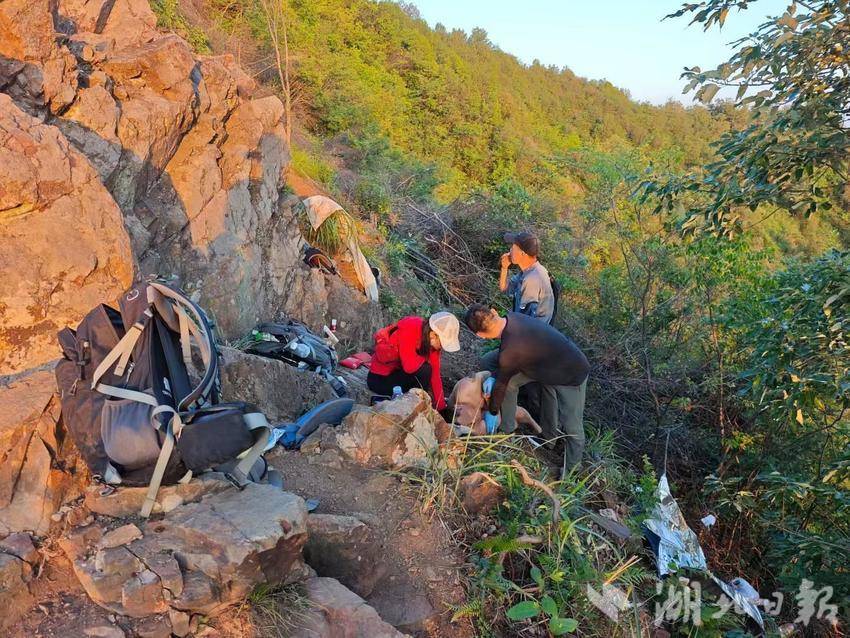 拨打救援电话后,卢茜和同伴们环顾四周,地形险恶,并无平地可转移。三人只能在悬崖峭壁间凭借人力支撑着这名男子。他们克服地形险恶、烈日暴晒等困难,持续为患者进行物理降温、保持呼吸道通畅等急救措施。随后加入的两名路人使救援队伍增至五人,他们轮流守护患者长达五小时,整个过程中,他们或蹲或趴,为患者遮挡烈日,防止其滑落悬崖。
