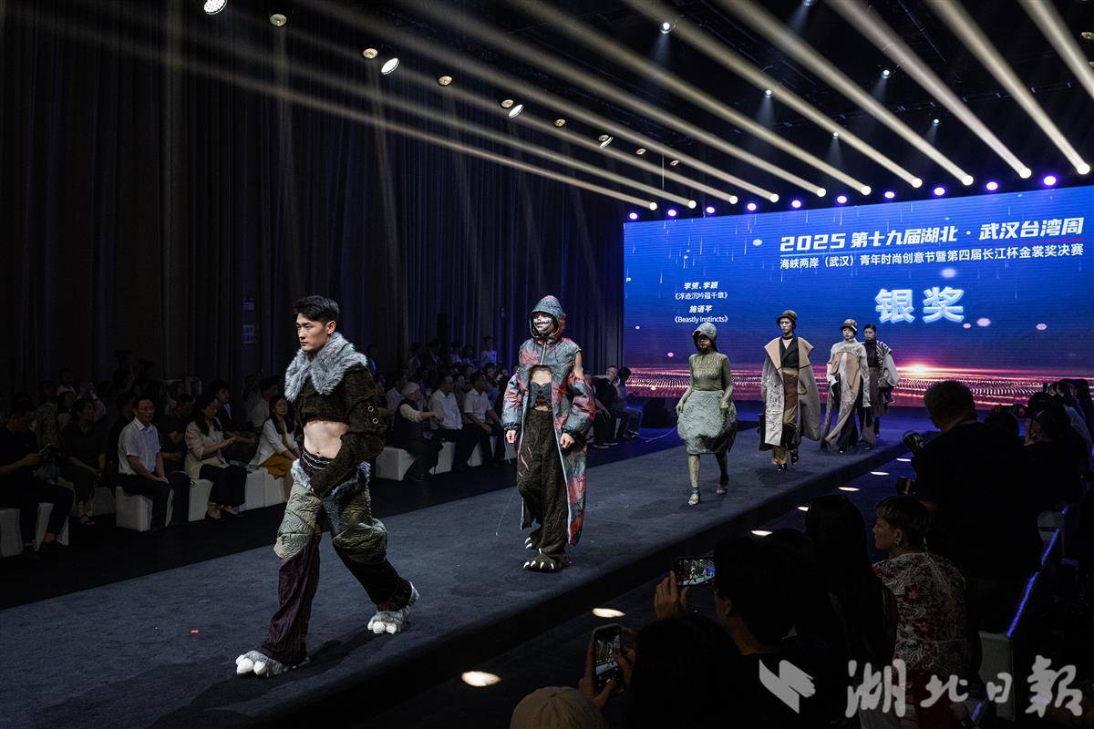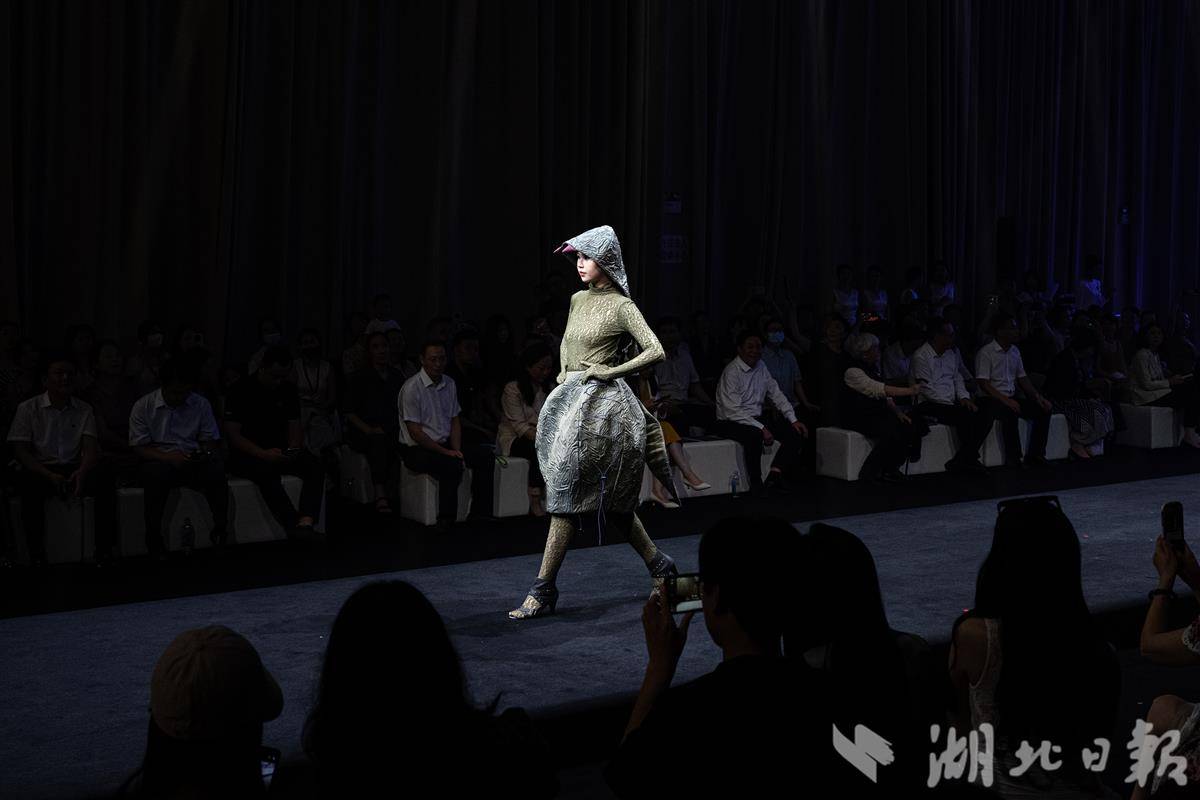 7月5日,在武汉市红T时尚创意街区,模特们身着两岸青年设计的华服在T台走秀。当日,海峡两岸(武汉)青年时尚创意节暨第四届长江杯金裳奖决赛在武汉举行,来自台湾辅仁大学、岭东科技大学、实践大学等8所院校的50余名青年设计师与武汉纺织大学、湖北美术学院等本地院校的学子们齐聚一堂,共同用创意与才华编织两岸友谊的新篇章。