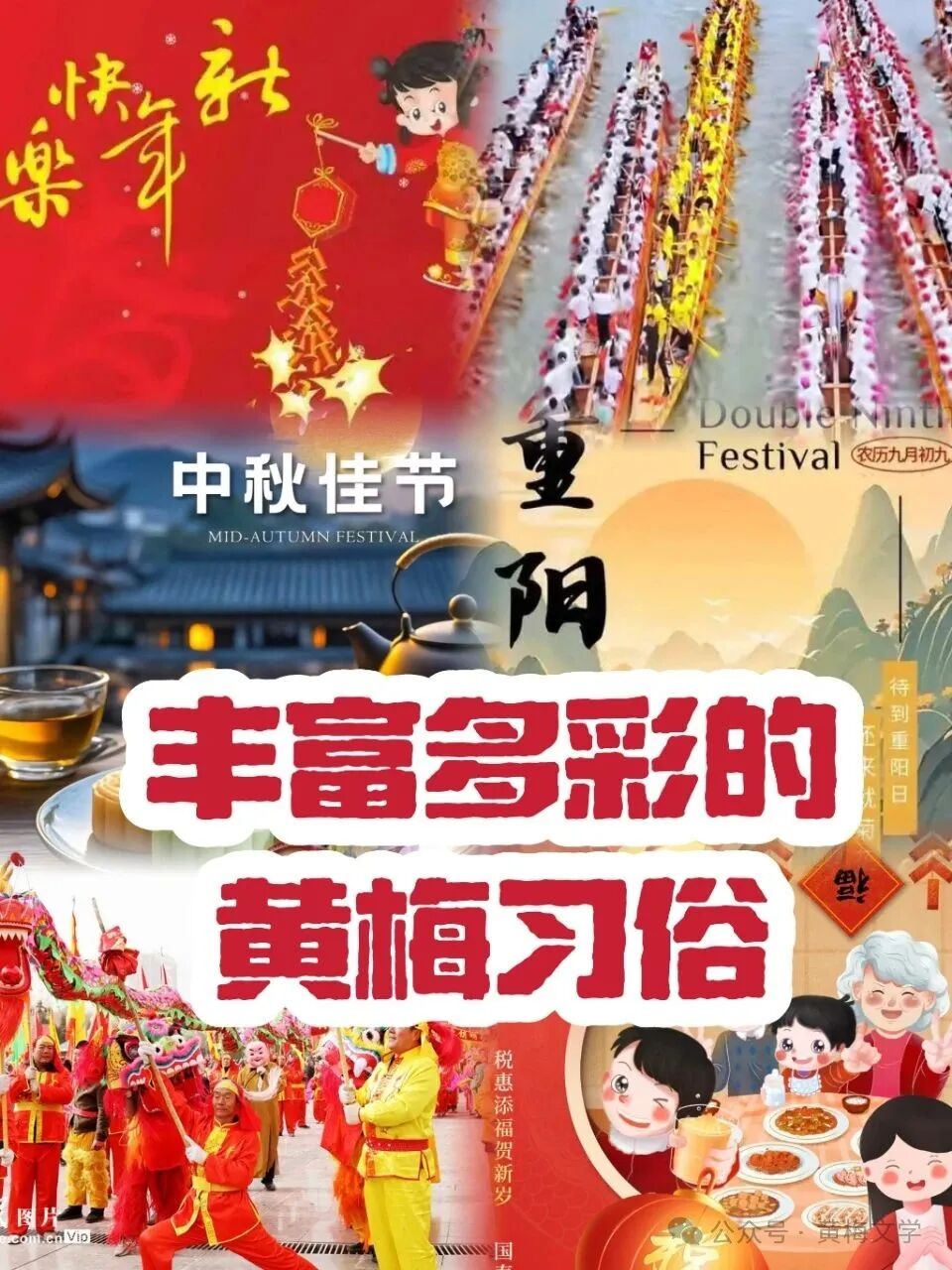九月九日重阳节,黄梅重阳节习俗兼具传统与地方特色:旧时合族祭祖分赠“老人肉”,现由机关单位村镇开展敬老慰问、文艺演出,所以现在的重阳节也就演绎成了敬老节;也有的地方保留插茱萸、饮菊花酒等古俗,同时创新举办黄梅戏表演、健康讲座等活动。作为“诗词之乡”、“楹联之乡”的黄梅,当地常常会组织文人墨客,开展吟诗作对活动,将传统习俗与红色教育、新时代文明实践活动相结合,展现古今交融的节日风貌。
