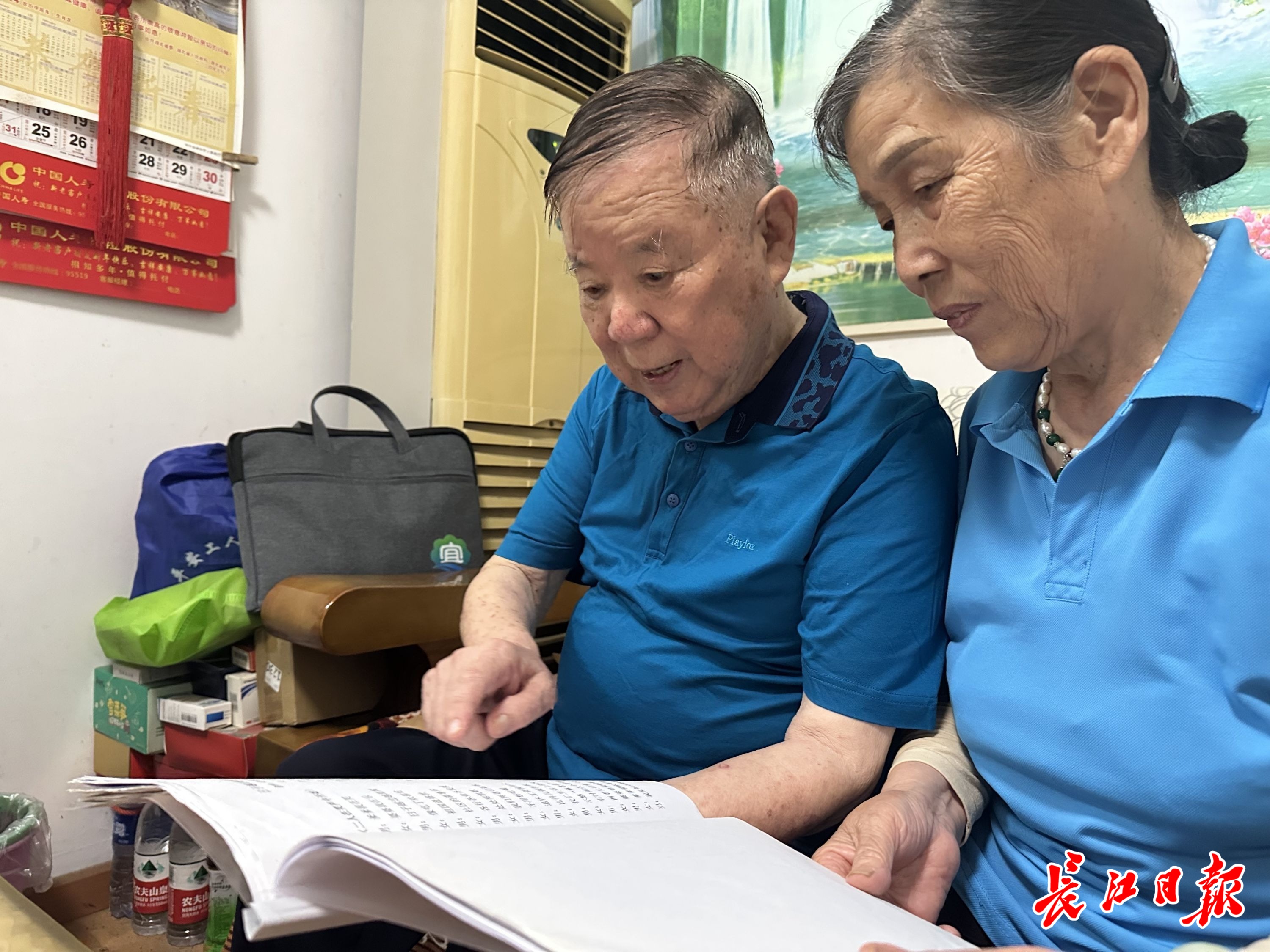 吴传发与老伴张冬梅交流作品。长江日报记者张衡摄