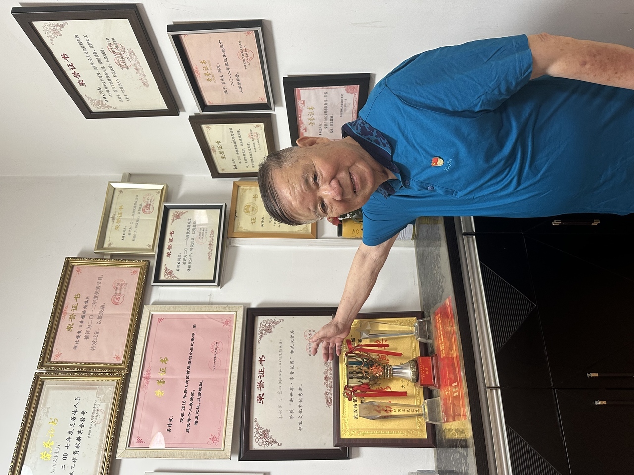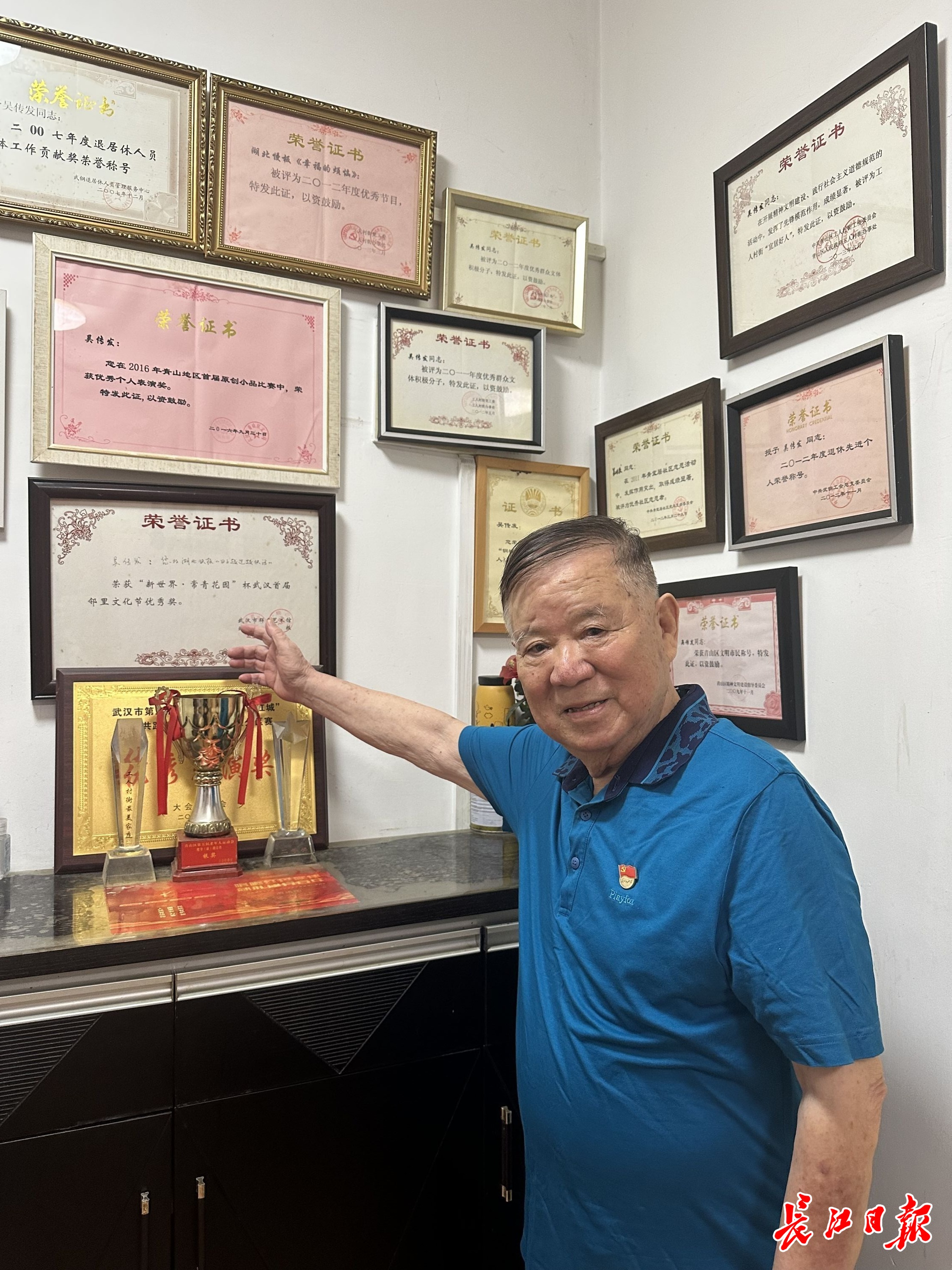 吴传发家中挂满了荣誉证书。长江日报记者张衡 摄