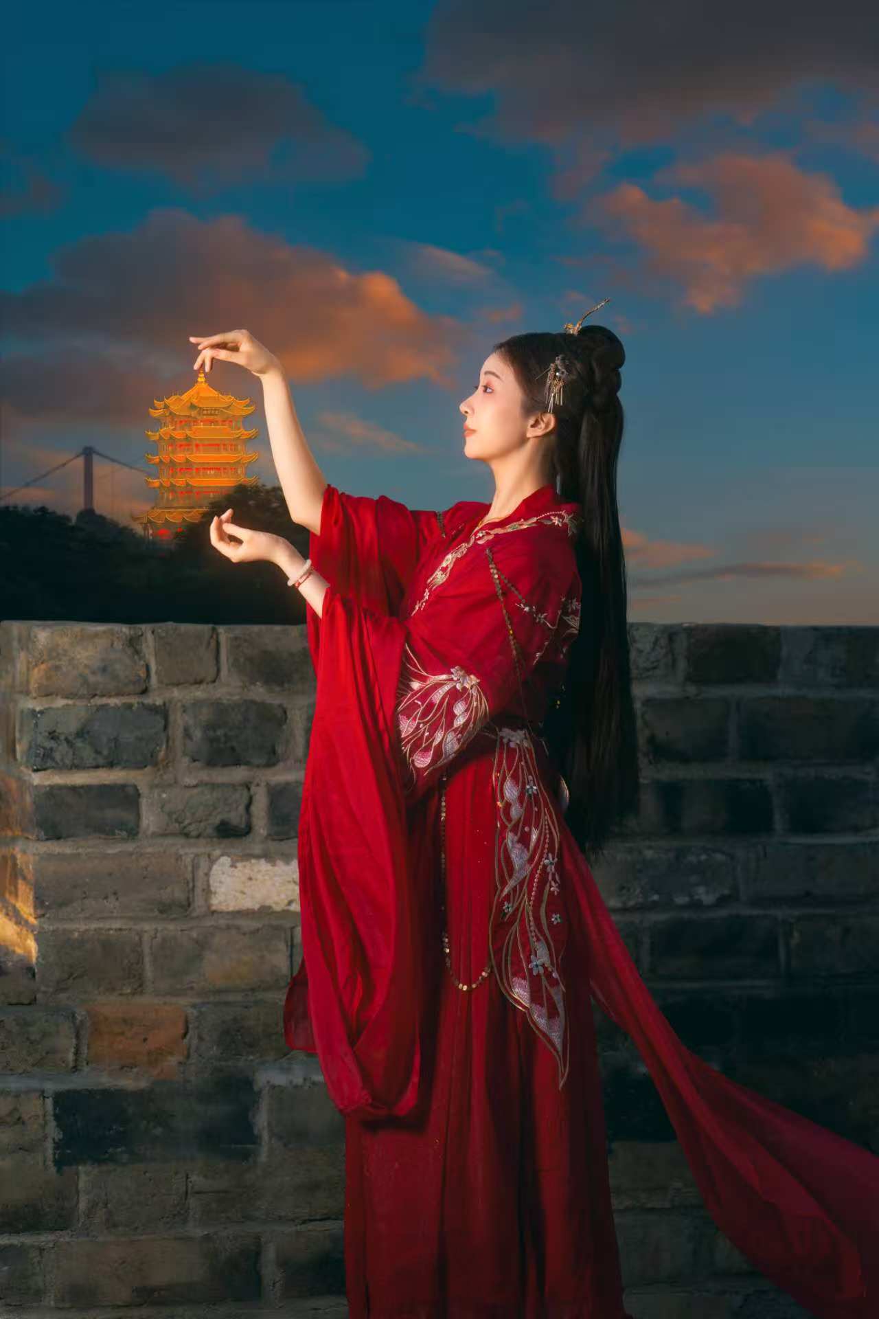 专程前来的长沙女孩张慧佳举起手机,镜头穿过一条蜿蜒的石板路,直抵黄鹤楼。画面中,飞檐斗拱与澄澈蓝天相接,仿佛定格了千年前的“白云千载空悠悠”。