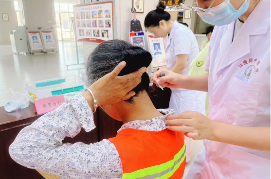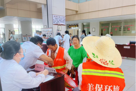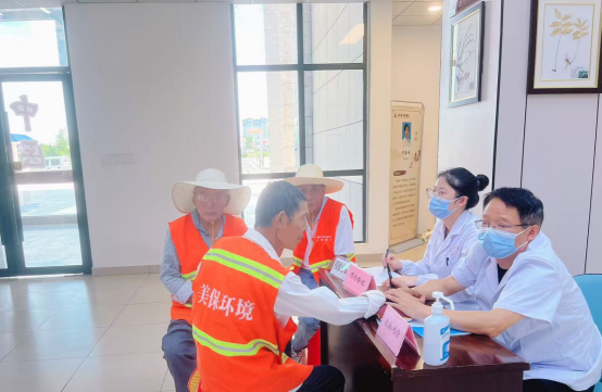 在活动现场,专业中医团队为环卫工人把脉问诊,环卫工人由于长期从事户外作业,劳动强度大,极易引发各类职业病,专家根据每个人不同的身体状况,给出针对性的健康建议。医护人员引导环卫工人进行了免费健康体检和三伏贴贴敷,并耐心细致地讲解健康知识,提醒他们注意劳逸结合,保持良好的生活习惯。