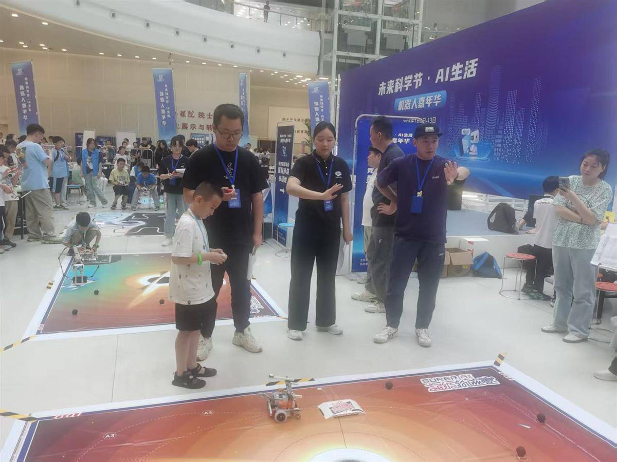 在“机器人嘉年华”活动现场,“AI工厂”前人头攒动,“智慧积木”等机器人竞技展示项目更让大朋友、小朋友们欢呼连连,现场化身一片“科技海洋”。