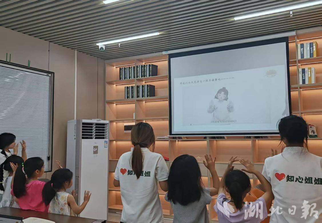 “知心姐姐”带领小朋友做感恩手势舞