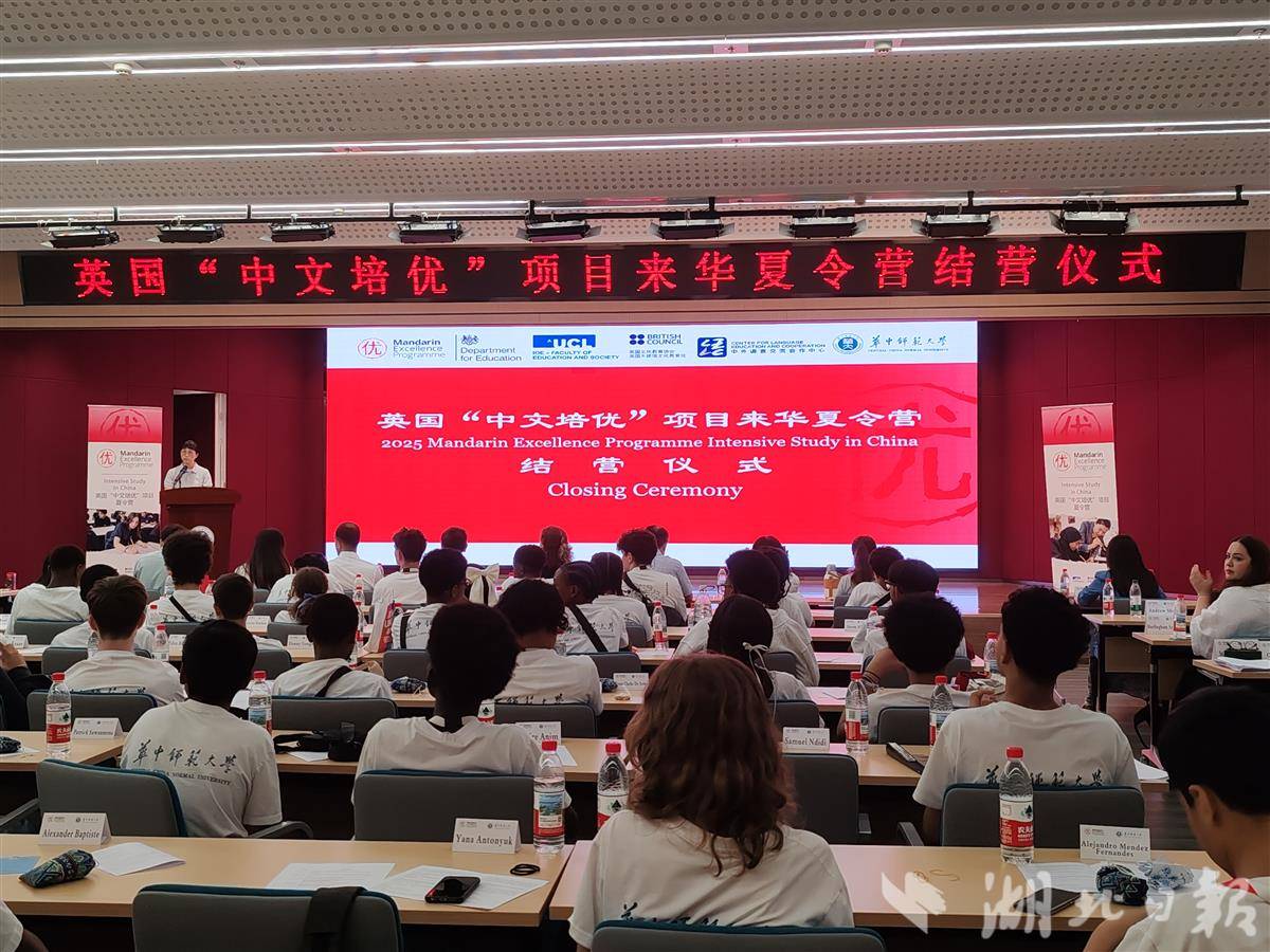 湖北日报讯(记者韩晓玲、实习生马志浩、陈雯茜、通讯员阮劭、袁咏琦)“谢谢你们!”7月14日,2025英国“中文培优”项目来华夏令营结营仪式在华中师范大学举行。4名英国中学生代表分享了此行收获,多次用中文向中国师生致谢。他们说,武汉之行既开心又难忘,夏令营让他们深入感受浓厚的中国文化、提升了中文水平。