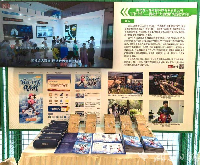 “百校千馆”——湖北省“大思政课”实践教学平台,由楚天都市报·极目新闻打造,旨在深入贯彻落实习近平总书记关于“大思政课”的重要指示精神。平台全国首创,实现博物馆、艺术馆、科技馆等资源线上“一键预约”功能,推动高校向社会打开大门、开放场馆资源,服务群众需要。