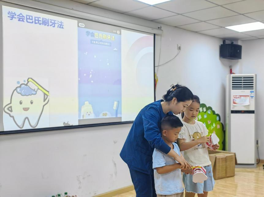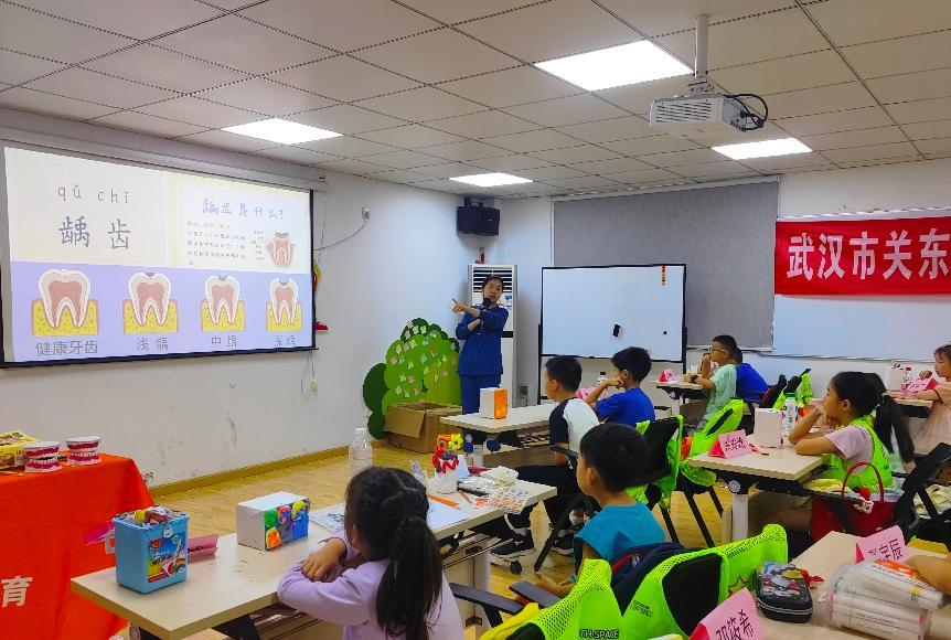 湖北日报讯(通讯员佘辰羽、黄肖萌)7月8日,武汉东湖新技术开发区关东街道清江社区联合湖北第二师范学院志愿者服务队、博雅口腔门诊,为社区暑期托管班学生上了一堂生动有趣的儿童口腔健康科普课,进一步丰富了社区七彩假期“爱心托管班”的课程内容。