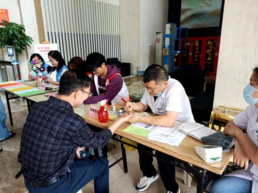 社区卫生服务中心医生同步为楼宇企业员工免费提供量血压、测血糖服务及专业健康咨询,科普职业病防治知识。“平时忙于工作没时间检查,这次服务很贴心。”王先生表示。