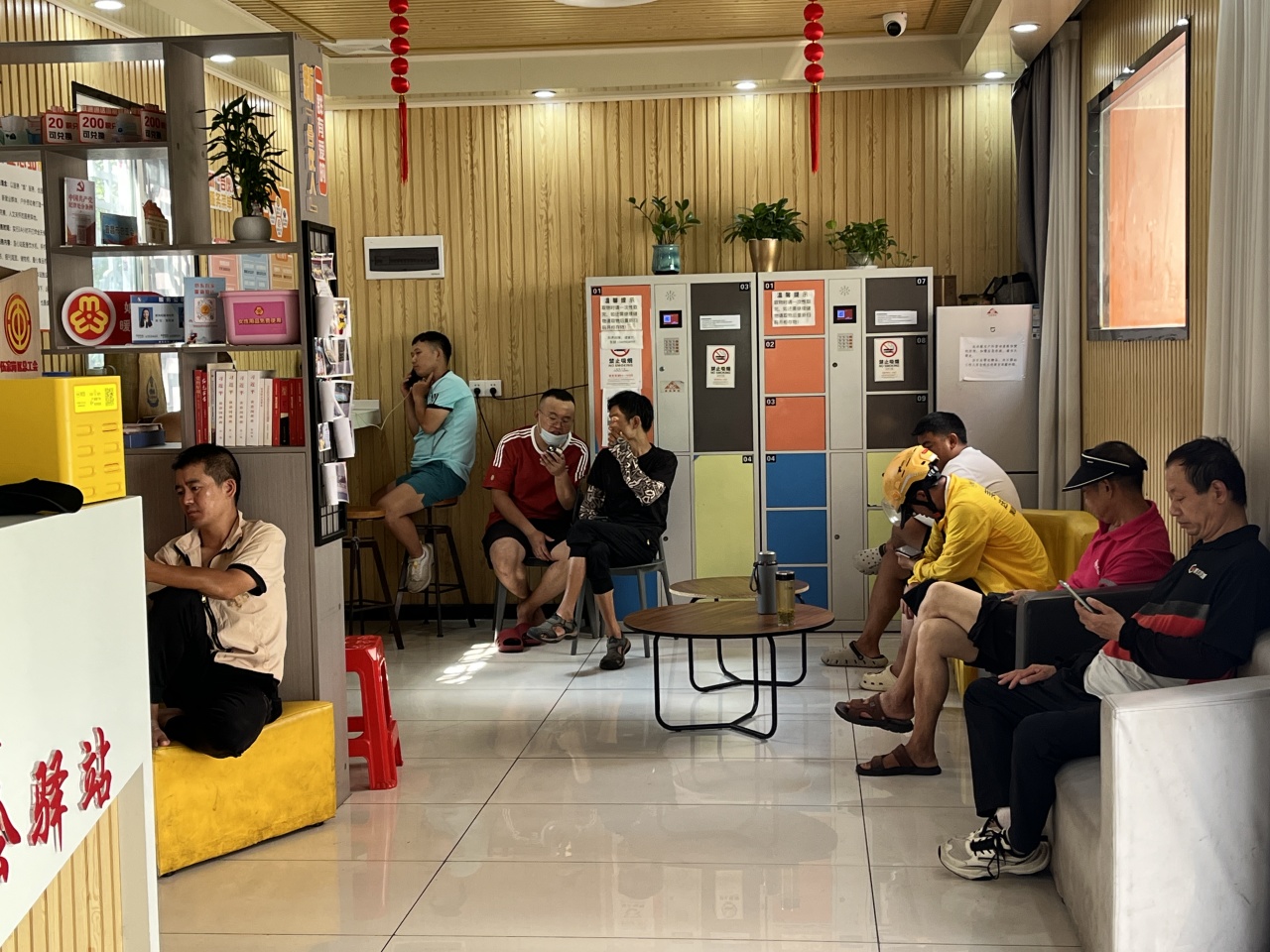 7月14日上午,在位于西陵区吾悦广场商圈的红领驿站,空调凉风扑面而来,不少外卖骑手或短暂休息,或给手机充电,享受着难得的清凉时光。