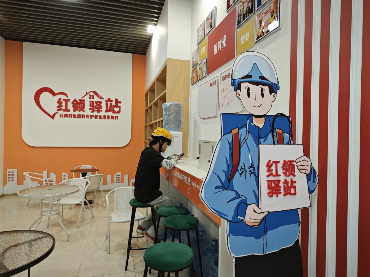 “驿站建好后,对我们的帮助真的太大了!”已成为驿站常客的外卖骑手顾龙胜笑着说,以前夏天他都是十分无奈地到地下车库躲太阳。“但地库还是蛮热,驿站建好后,我们终于有了一个固定的纳凉歇脚点。”