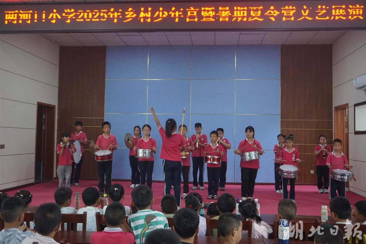 湖北日报讯(记者韩晓玲、通讯员林隽如、李秋实、张雯嘉、实习生马志浩)7月17日,一场充满童真与热情的文艺汇报演出在秭归县两河口镇两河口小学举行。孩子们通过鼓号、合唱、舞蹈、电子琴、葫芦丝、口风琴、朗诵等节目,展现了12天来的学习成果。