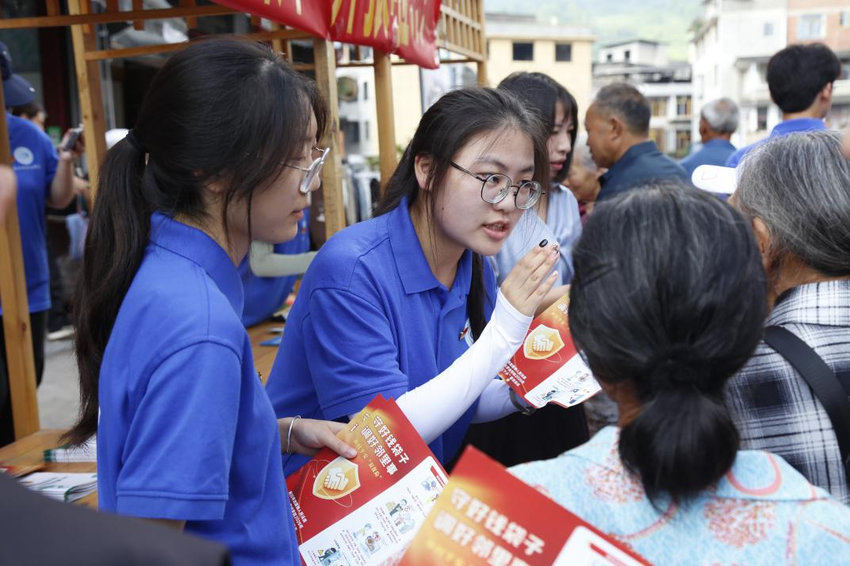 “老板拖欠工资快一年了,我该找哪个部门?”“借条写了三年多,现在还能起诉吗?”普法摊位铺一设立,便吸引了众多赶集群众的驻足咨询。在利川市人民法院忠路法庭庭长龙勇的专业指导下,长江大学法学院的志愿者们化身“法律郎中”,针对婚姻家庭、邻里纠纷、民间借贷、妇女儿童权益保护等高频民生法律问题,结合《中华人民共和国民法典》具体条款和真实审判案例,用通俗易懂的语言“把脉问诊”,开出“法律良方”。