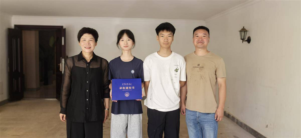 7月18日上午,赤壁市某小区内锣鼓喧天,写有“热烈祝贺李汪晏被空军预警学院录取”字样的横幅格外显眼。李汪晏的父母李周林、宋先慧夫妇带着女儿李汪晏、儿子李俊霖早早来到家门口,迎接前来送录取通知书的队伍。