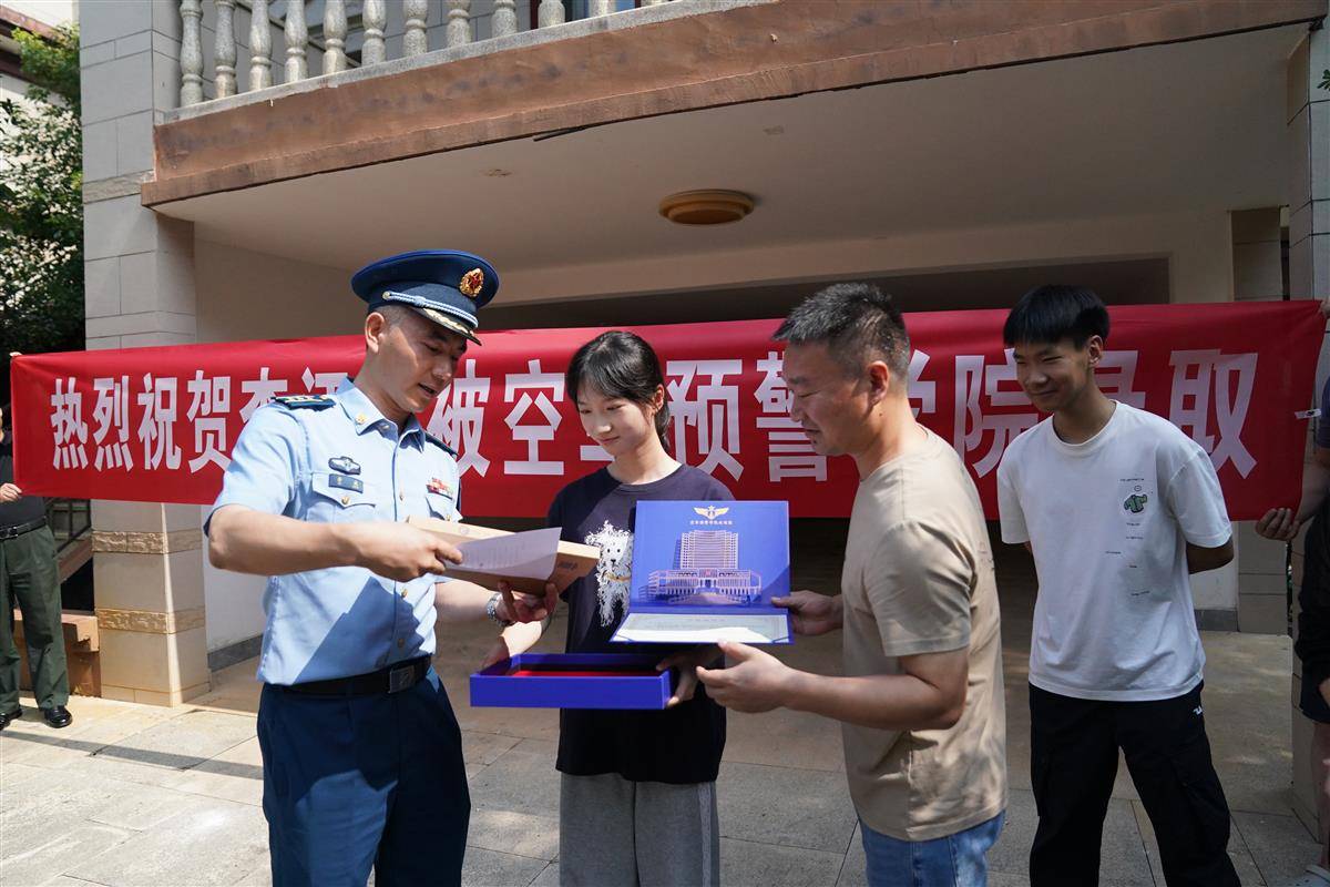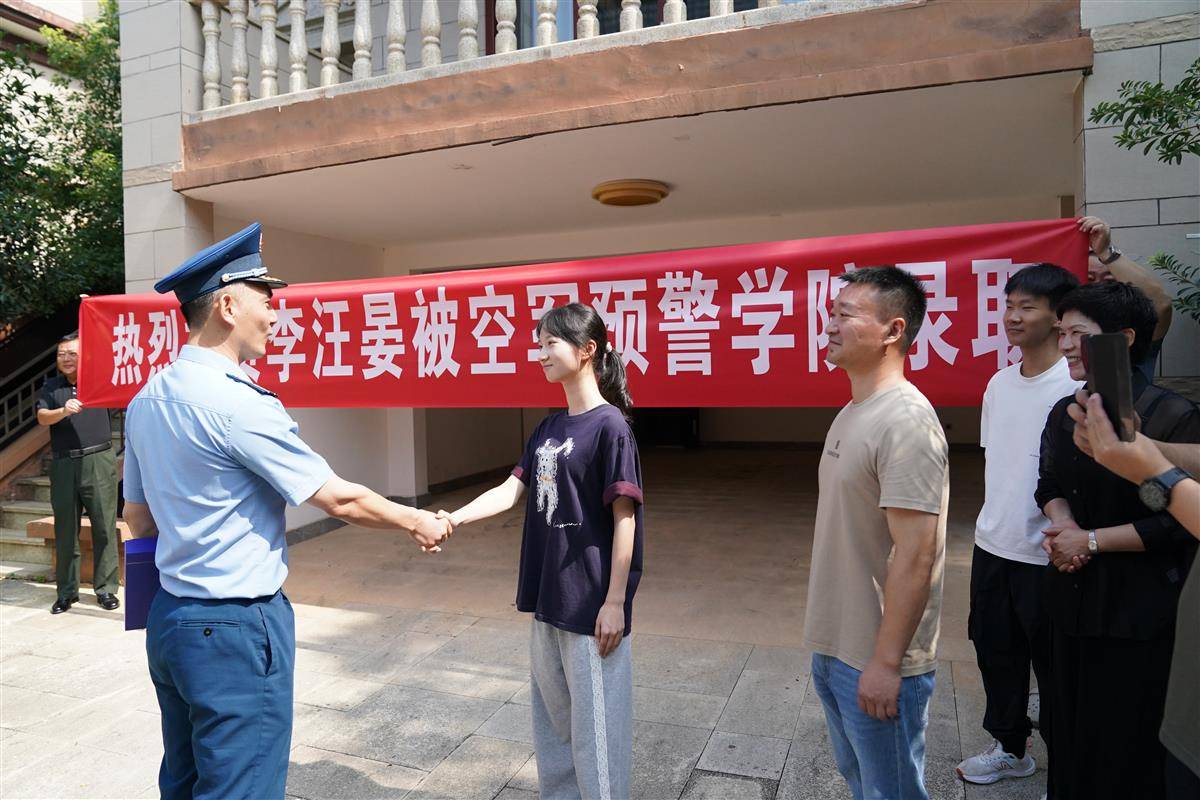 “李汪晏同学,祝贺你,我代表空军预警学院欢迎你的入列。这是你的录取通知书,你凭借不懈的努力,在高考中脱颖而出,这份录取通知书,也是你开启全新征程的钥匙。经略空天,欢迎你的加入。”在现场,空军预警学院相关同志将录取通知书送到李汪晏手中。