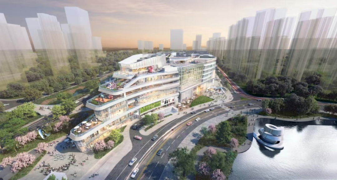 △武汉金茂览秀城项目规划概念图,形似一艘商业游轮。