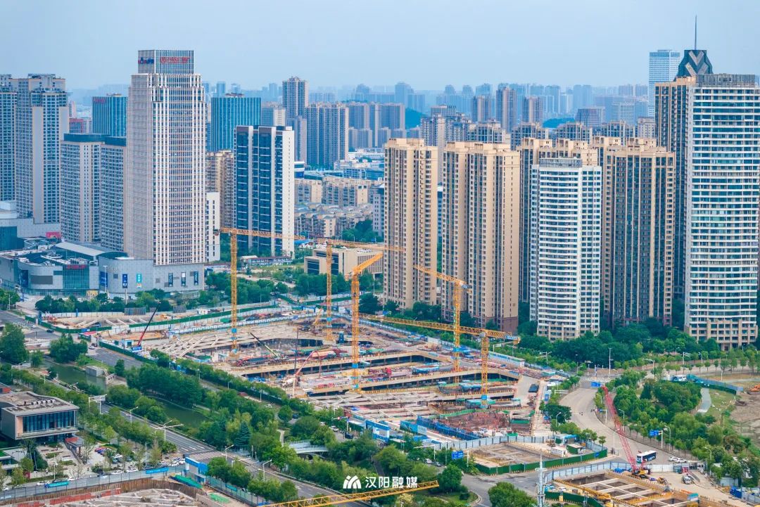 △武汉金茂览秀城项目建设现场呈现一派繁忙景象。