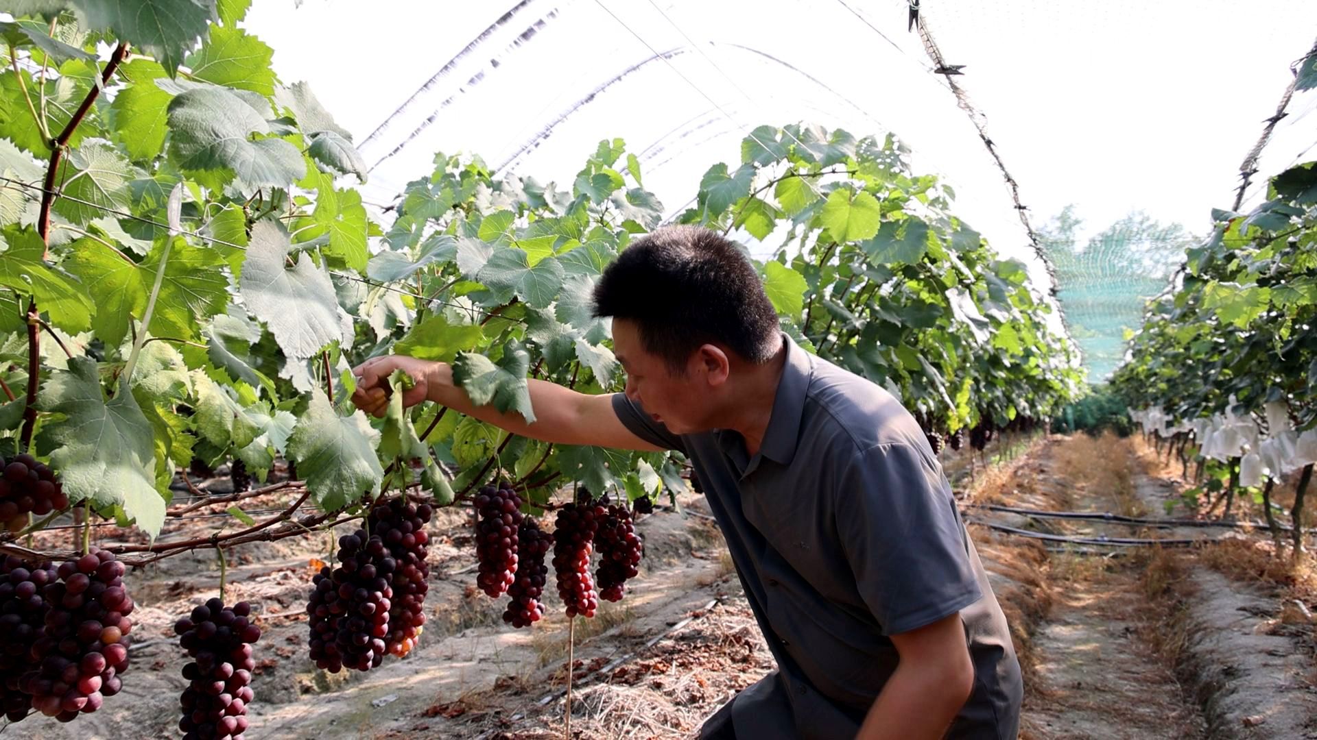据悉,兰冬青种植葡萄已经有8个年头了,为了让葡萄增产增收,他每天都要来田里观察葡萄的生长状况,通过水肥一体化设施及时调节棚内湿度、定时修剪裂果、枯叶等方式,确保葡萄有机绿色、健康生长。