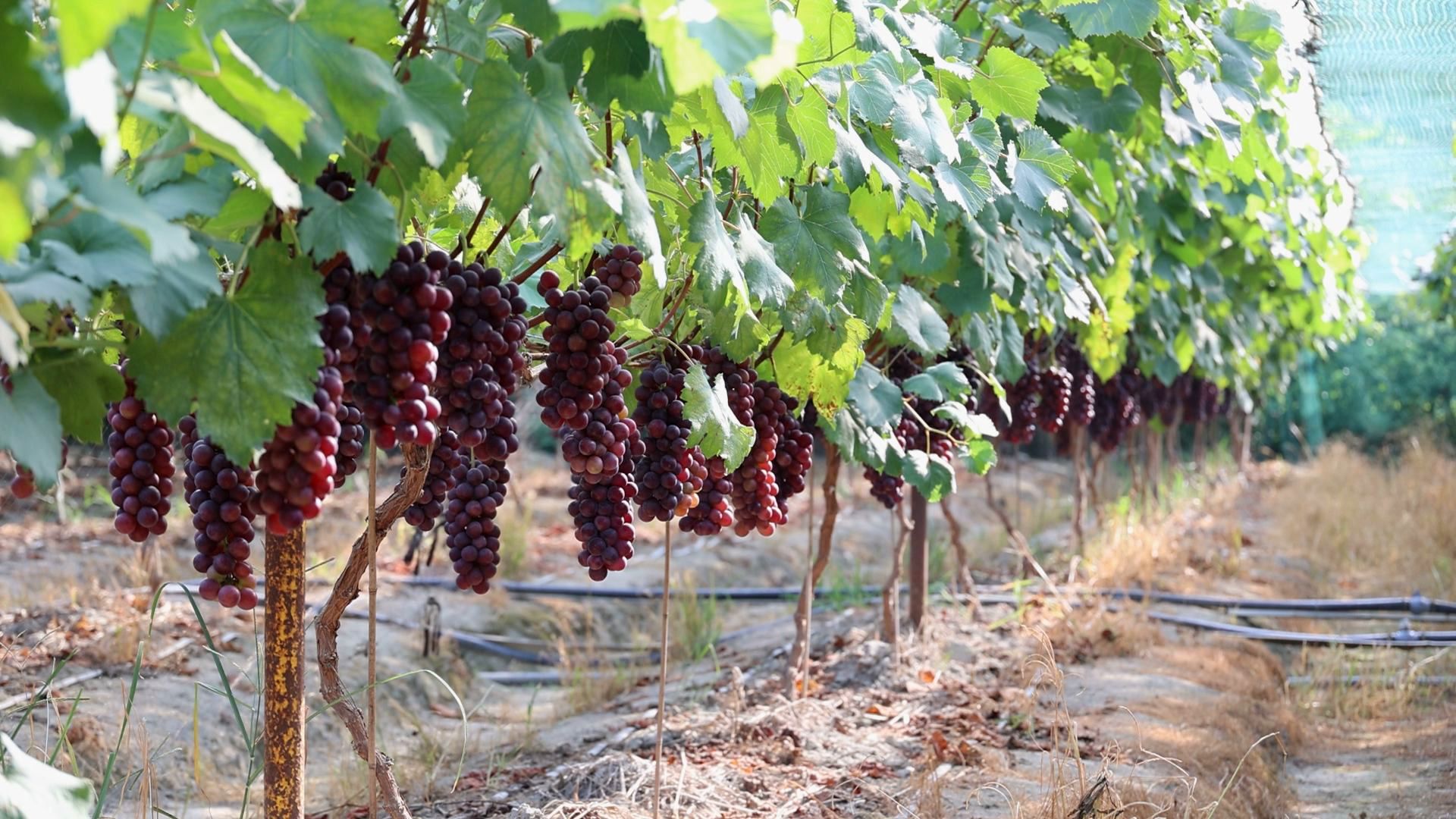 通城县樊店葡萄园负责人 兰冬青:7月16号上市的葡萄就是我们的早熟夏黑葡萄以及少量的户太八号,另外我们的阳光玫瑰大概在8月20号可以上市。