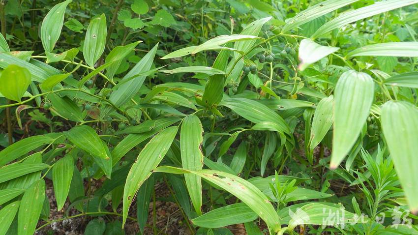 7月18日,记者走进金塘镇水坑村的凤凰山沙窝黄精种植基地,只见群山环抱间林木葱郁,半山腰的斜坡上,一株株黄精悄然生长在树林与杂草丛中,绿叶掩映下根茎饱满。该基地总面积120亩,每亩种植6000-8000株多花黄精,从种苗到种植全程遵循自然规律,依托深山得天独厚的生态环境,孕育出的黄精品质上乘。