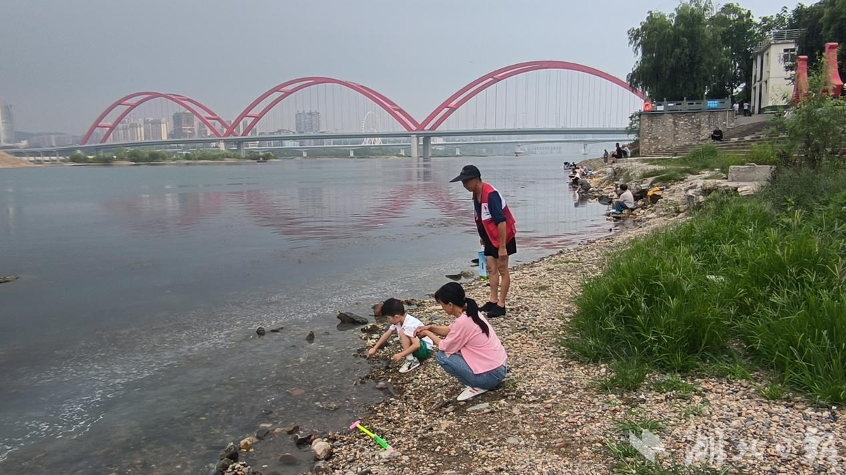 队员们沿着汉江河展开巡查,对易发溺水事故的危险水域进行安全排查,查看周边水域防溺水警示牌、救生圈、救生绳、救生杆等防溺水设施是否齐全,并向过往市民群众宣传普及防溺水知识,提醒附近居民不要让孩子在无安全措施的水域游泳,让群众深入了解防范溺水知识的同时,也增强了群众爱护环境的意识。