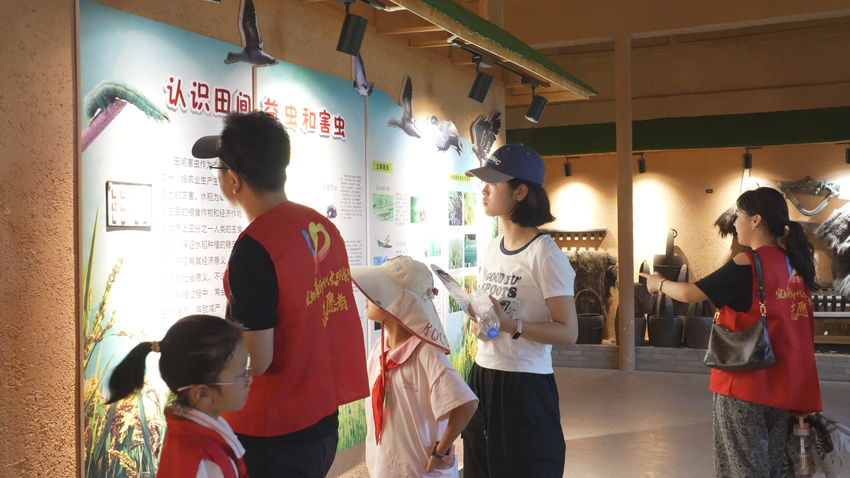 活动还特别关注孩子的安全与传统文化认知。社工为亲子家庭讲解防溺水知识,提醒孩子们注意暑假安全。活动的最后一站,大家走进农耕文化馆。看着一件件老旧的农具,孩子们触摸着祖辈的勤劳与智慧,对“粒粒皆辛苦”有了更真切的体会。
