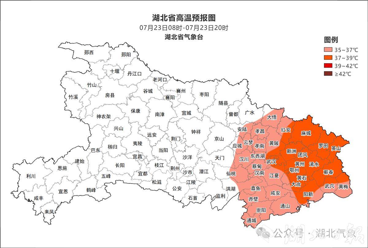 湖北日报讯(记者曾莉)高温晴热卷土重来!据最新气象资料分析,预计7月24日降水减弱,仅西部有分散性雷阵雨,高温天气将再度发展,中东部高温达39°C;25日全省以晴到多云为主,局地可达40°C。