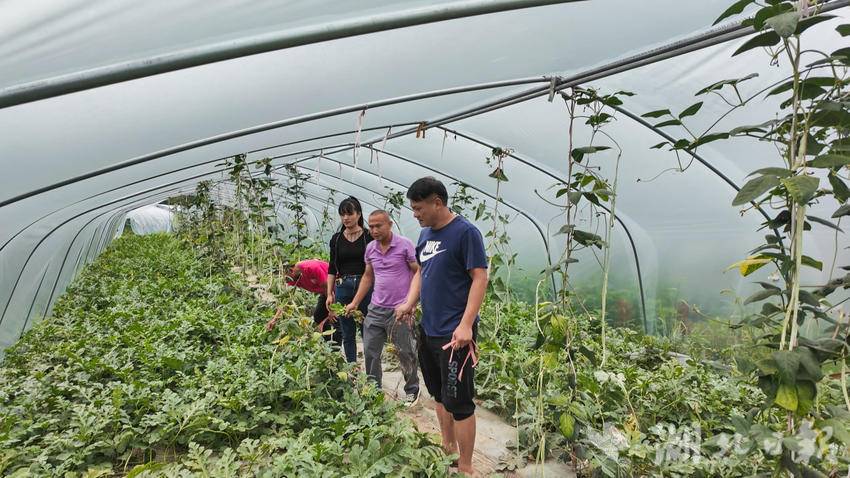 在堰下村家庭农场瓜棚里,圆滚滚的西瓜在绿叶间若隐若现,空气中弥漫着瓜果成熟的甜香。该农场是由村里牵头打造的“集体农场”,盛夏的果实为乡村注入了新鲜活力。截至目前,已为村集体增收21万元,联农带农31户,有效带领他们务工增收。