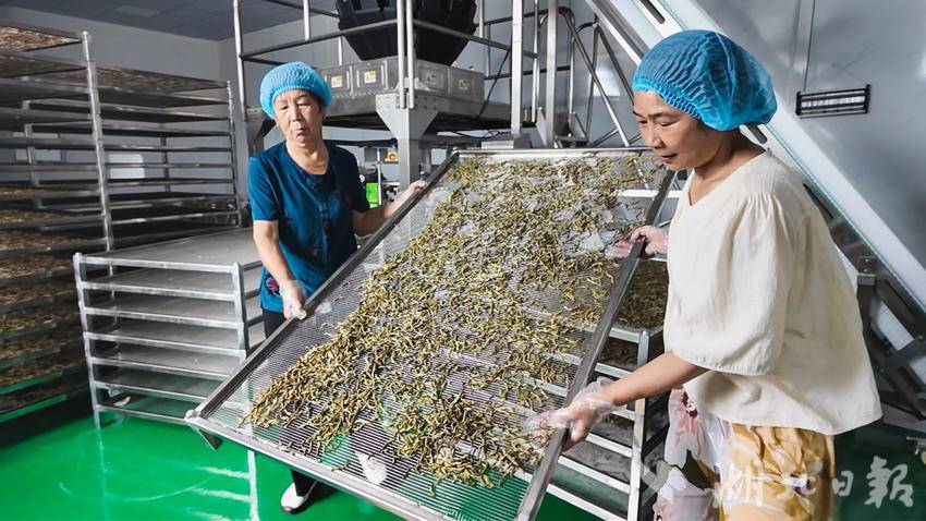 7月25日,湖北荃品汇食品有限公司开业投产运营。车间内,村民们忙碌在各条工序上对新鲜苦瓜进行加工,从最开始的清洗、切削到最终的烘干装袋一气呵成,这种流水线生产模式,不仅提高了农产品的加工效率,还保证了农产品质量的稳定。