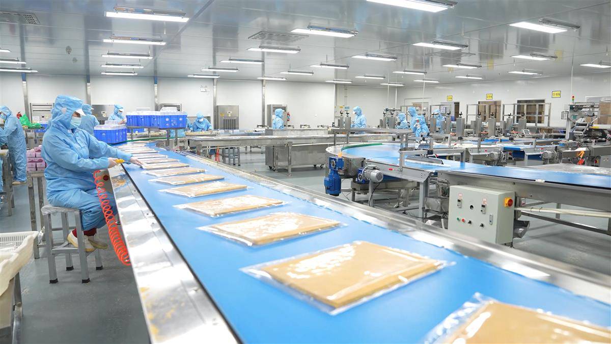 和面、压片成型、切割、醒发、蒸制、冷却……湖北钟祥金源食品股份有限公司的生产车间里,新鲜出炉的松塔酥、手撕面包、米茶面包等糕点香气扑鼻。