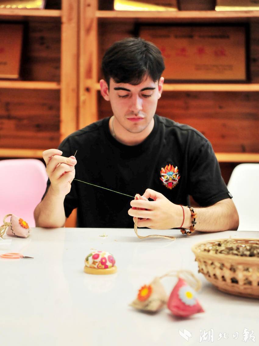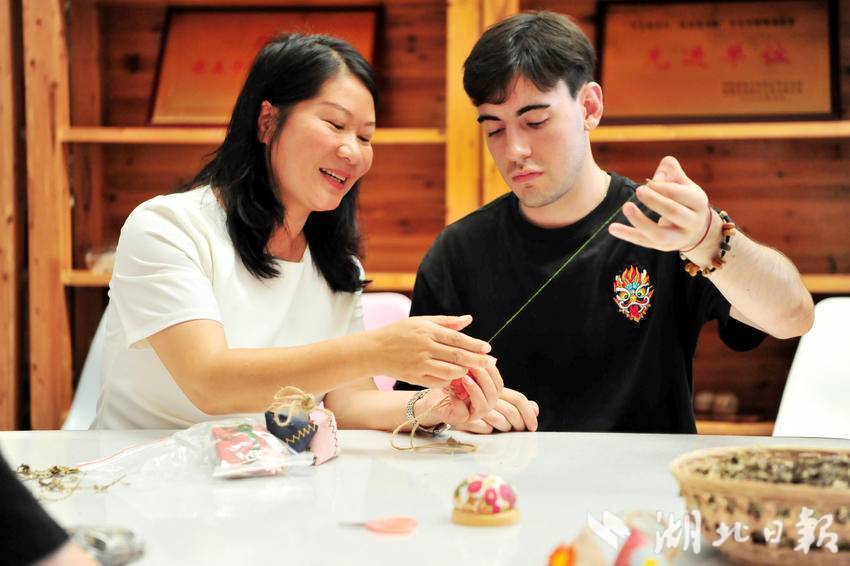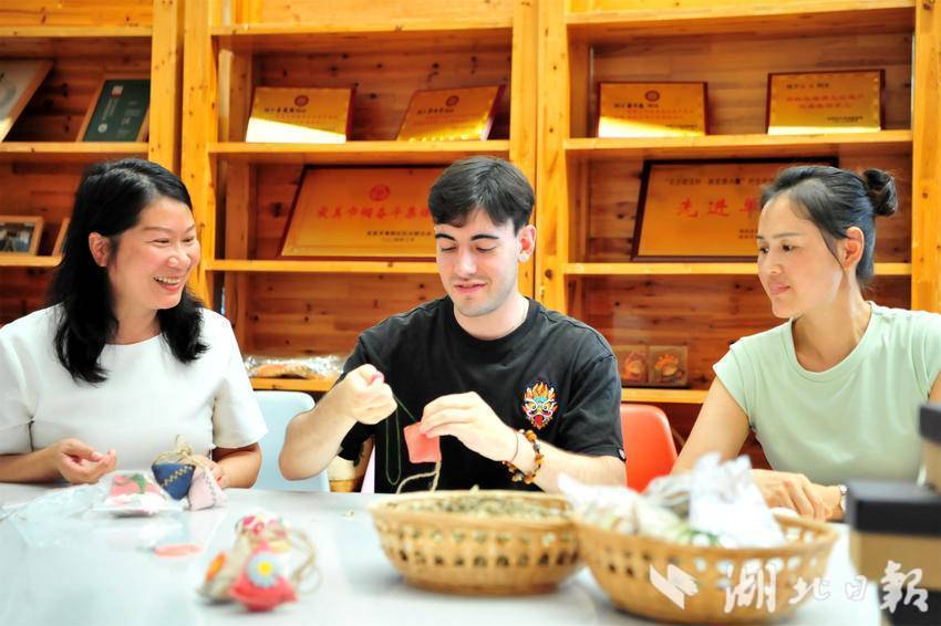 在许家冲村,绣娘们飞针走线,绢布上的“牵花绣”花朵栩栩如生,让三位外籍博主大开眼界。他们纷纷拿起印有牵花绣的囊袋,一点一点填入艾草,并一针一线缝口,制作成一件独特的手工艺品,感受着非遗“牵花绣”的独特韵味,开启一场对三峡非遗文化的探访,并通过海外社交媒体平台化身“宜昌推荐官”,将亲历的城市故事、触摸到的发展脉搏、感受到的文化魅力,融进写给世界的“私信”里,转化为多样形式的传播内容。