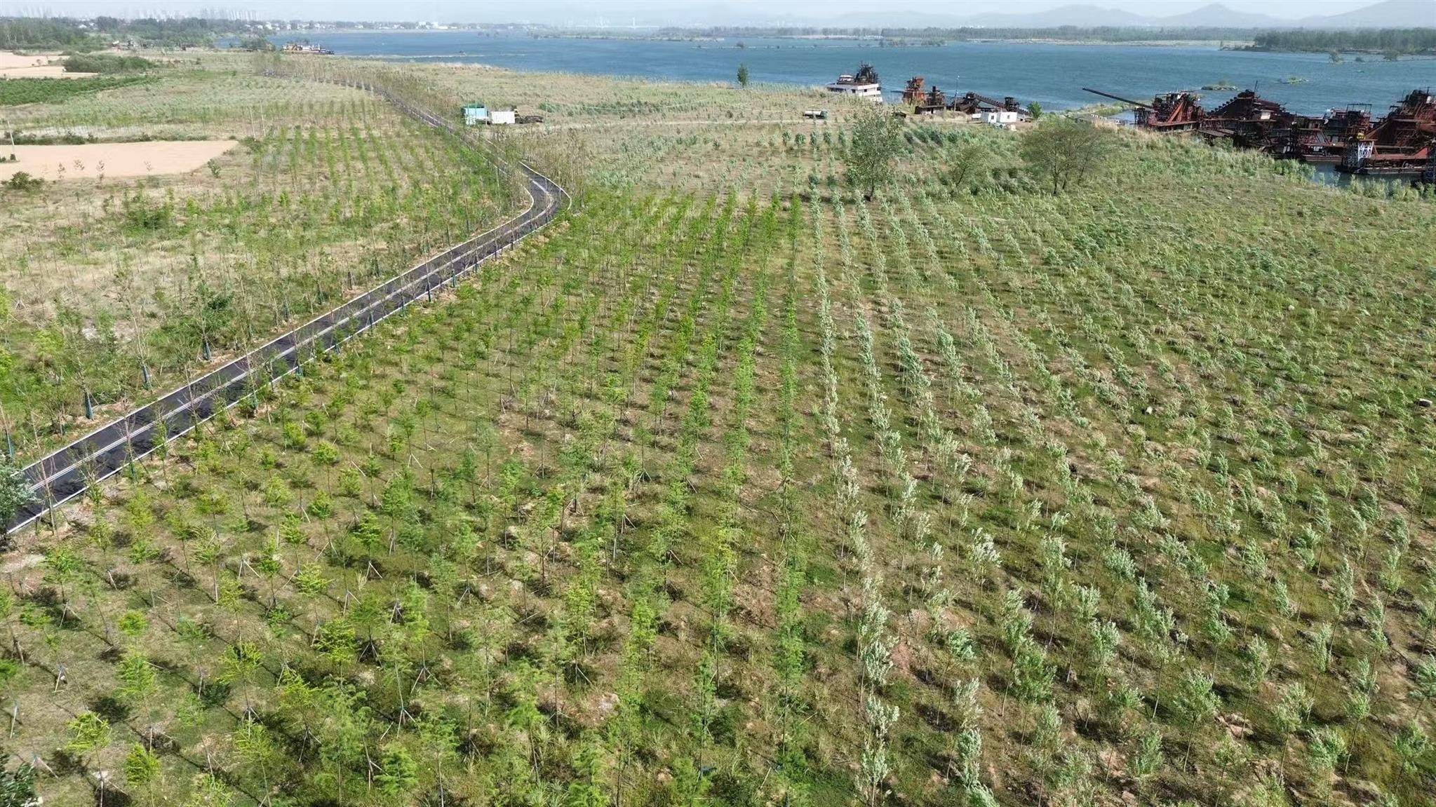 细密水珠的精准滋润使得树苗的成活率大幅提升,8.3万株苗木在昔日的“不毛之地”扎下了根,一片新绿在砂石废墟上倔强蔓延。