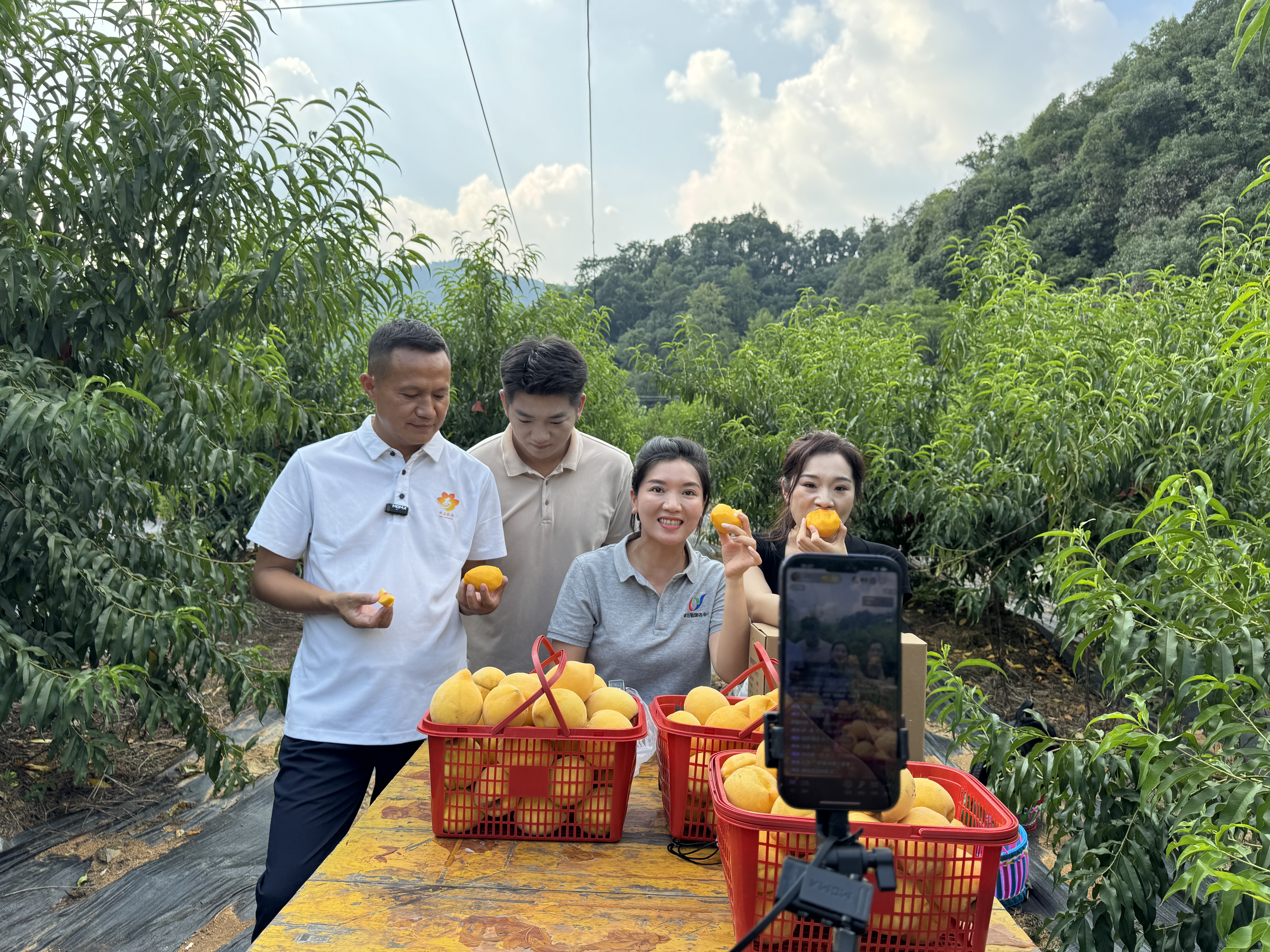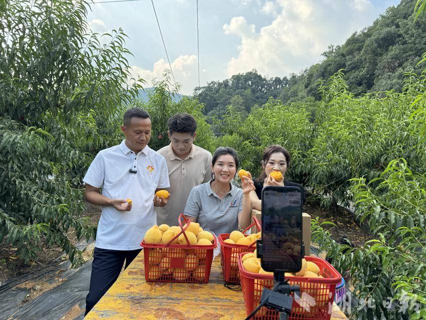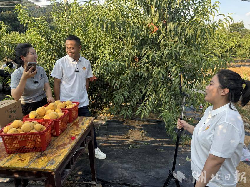 湖北日报客户端讯(通讯员陶然)“大家看,这些黄桃全部都是我身后的果树上新鲜采摘下来,新鲜水灵!喜欢的朋友千万不要错过。”