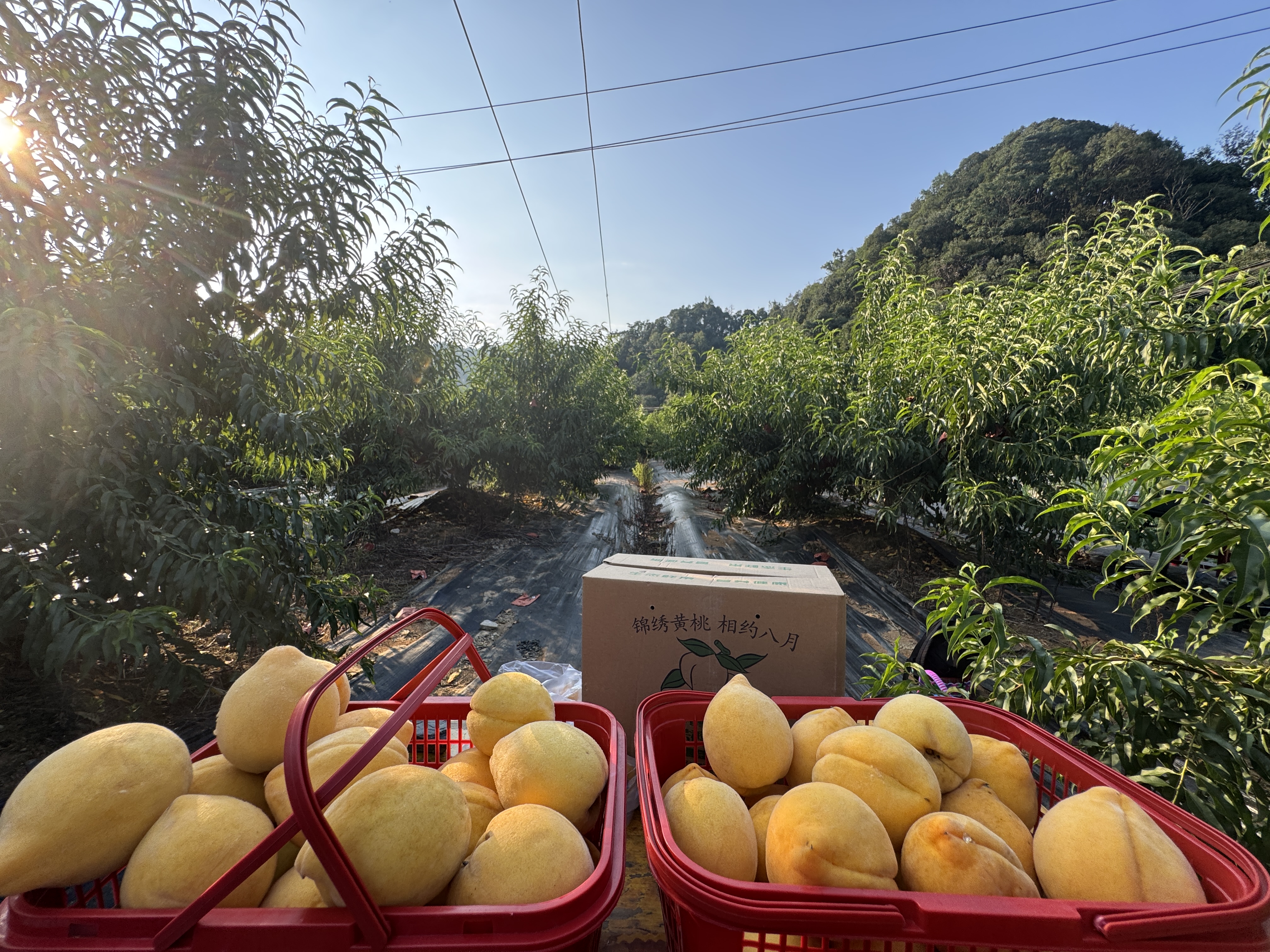 “充足的光照、显著的昼夜温差,搭配富含矿物质的天然土壤,孕育出果实饱满、色泽艳丽的锦绣黄桃。”