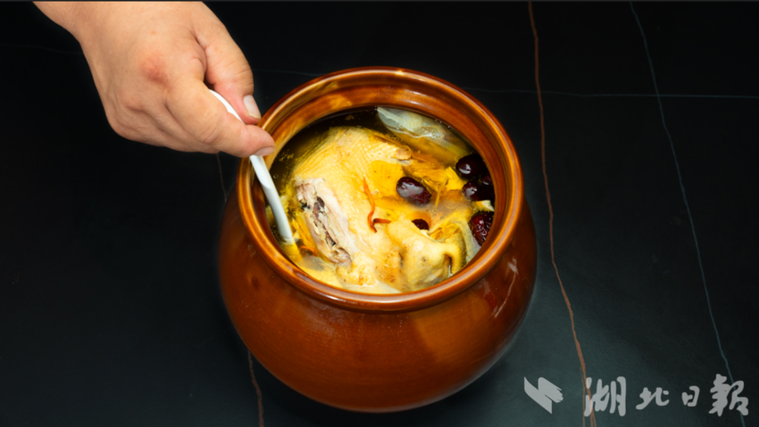 展会还特别设置了“楚菜文化长廊”,通过实物展陈、工艺演示以及AR互动等丰富多样的形式,生动展现了汉川饮食文化与楚文化之间深厚的渊源。在这里,“全虾宴”以汈汊湖的清水小龙虾为原料,巧妙融入《楚辞》中的意象进行摆盘,尽显文化韵味;“榔头蒸鳝鱼”延续了楚国“饭稻羹鱼”的传统饮食习俗,采用竹制蒸笼蒸制,最大程度地保留了鳝鱼的鲜嫩口感,充分体现了楚菜“蒸煨擅长”的特色。