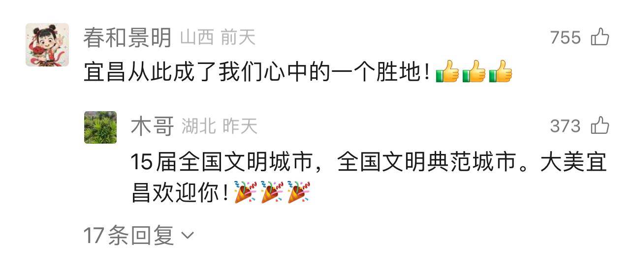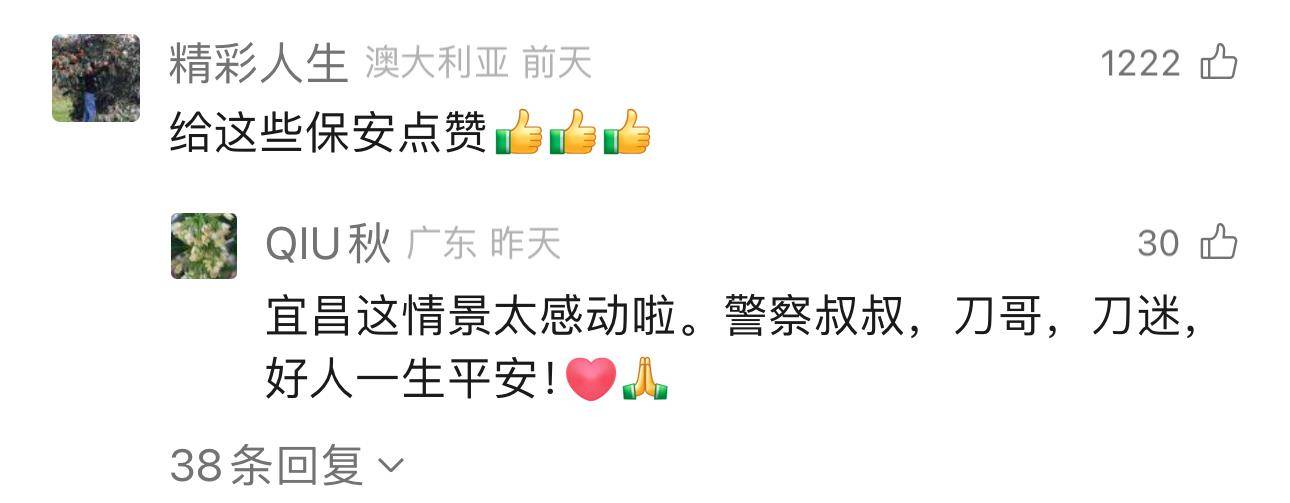 网友在留言区纷纷点赞宜昌以及安保人员: