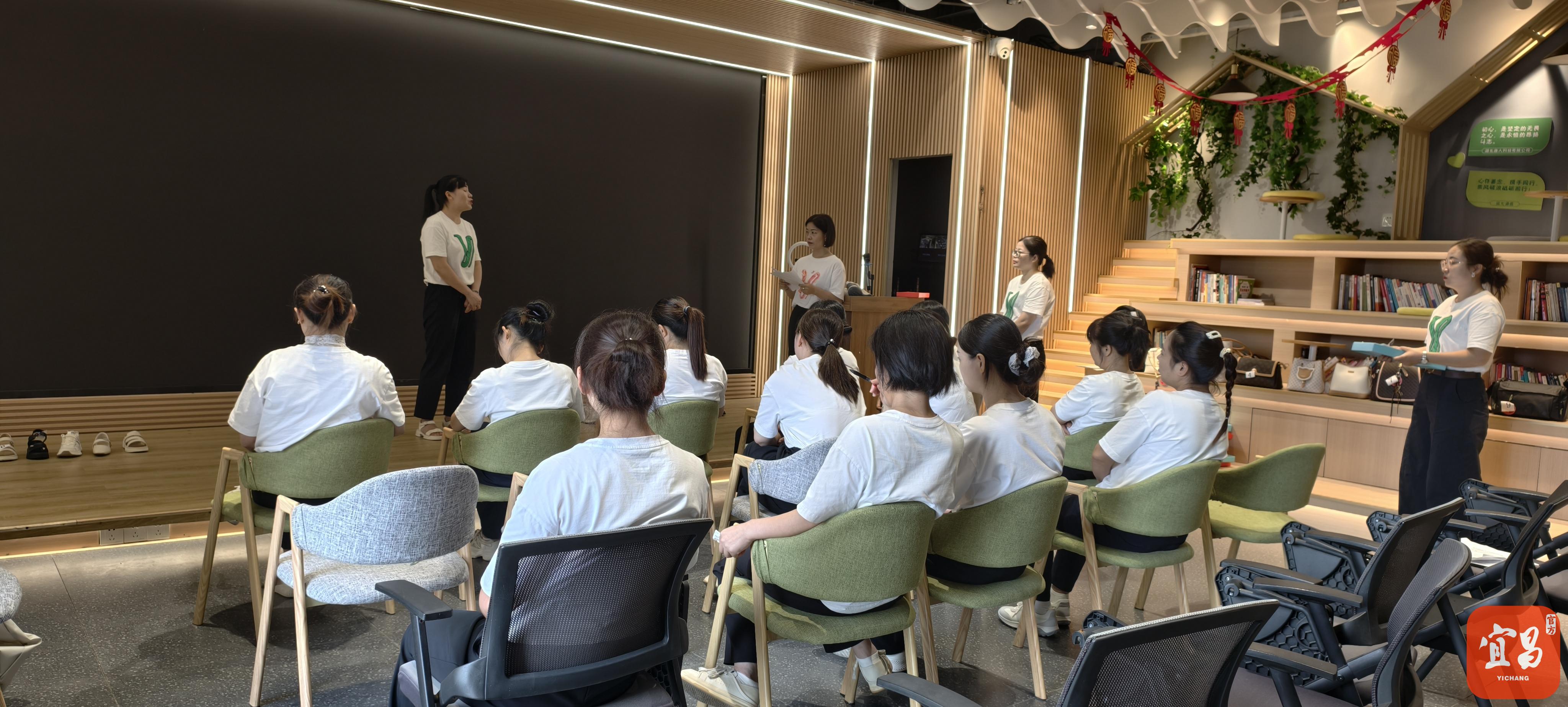 7月22日,意尔康店长王昆琴和18位员工在CBD购物中心5楼“蜂巢”进行技能服务培训。 通讯员李晶晶 供图