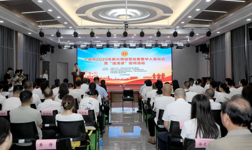 湖北日报客户端讯(通讯员江宇峰、吴楠)8月6日上午,十堰市2025年新兴领域劳动者集中入会仪式暨“送清凉”慰问活动在市工人文化宫举行。市总工会党组书记、常务副主席凌燕出席活动并讲话,市总工会党组成员、副主席郭升平主持活动,市自然资源和城乡建设局副县级干部刘旺才、市非公企业和社会组织工会主席胡文涛等相关单位负责人及来自建筑业、广告业、装饰业、林业、家庭服务业、自媒体行业等新兴领域的150余名劳动者代表参加活动。