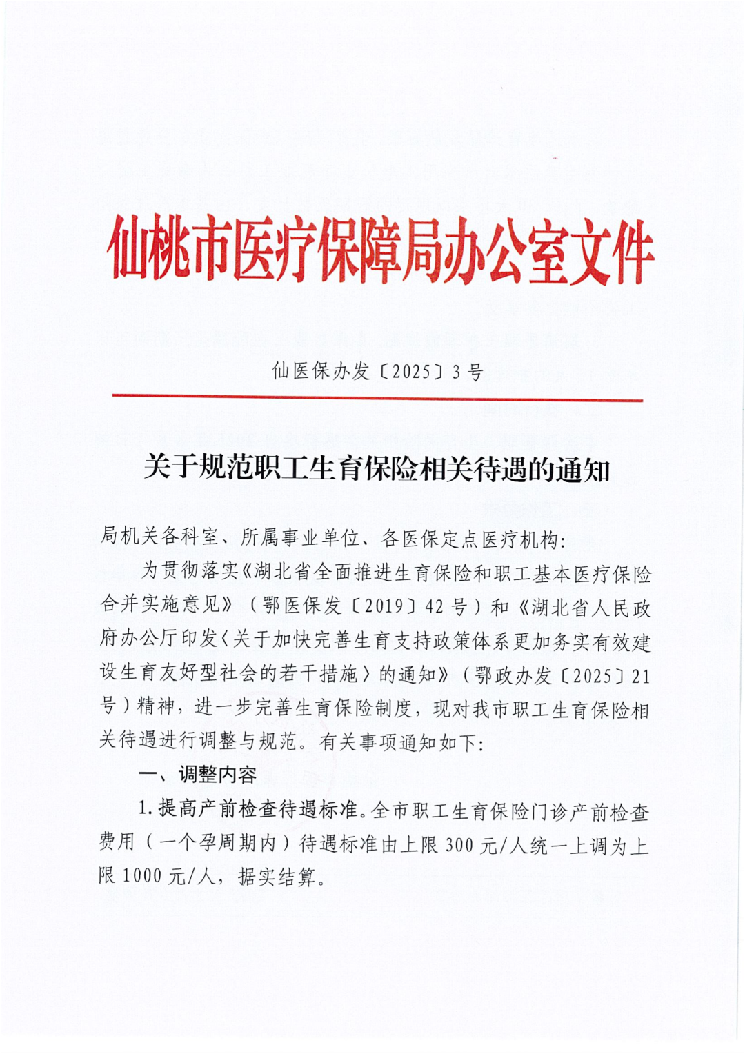 为贯彻落实《湖北省全面推进生育保险和职工基本医疗保险合并实施意见》(鄂医保发〔2019〕42号)和《湖北省人民政府办公厅印发<关于加快完善生育支持政策体系更加务实有效建设生育友好型社会的若干措施〉的通知》(鄂政办发〔2025〕21 号)精神,进一步完善生育保险制度,现对我市职工生育保险相关待遇进行调整与规范。有关事项通知如下: