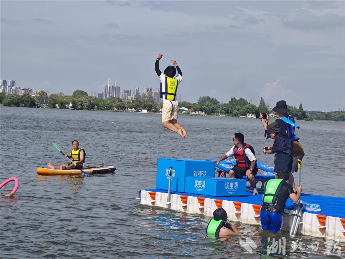 湖北日报讯(记者冯袁玥、见习记者甄子萱、通讯员钟珊)“痛快!过瘾!热闹!”8月9日周六,武汉东湖楚城里,2025年跳东湖活动热闹上演。数百名参与者在观众的掌声中一头扎进清凉的东湖水,享受独属于武汉的亲水欢乐。
