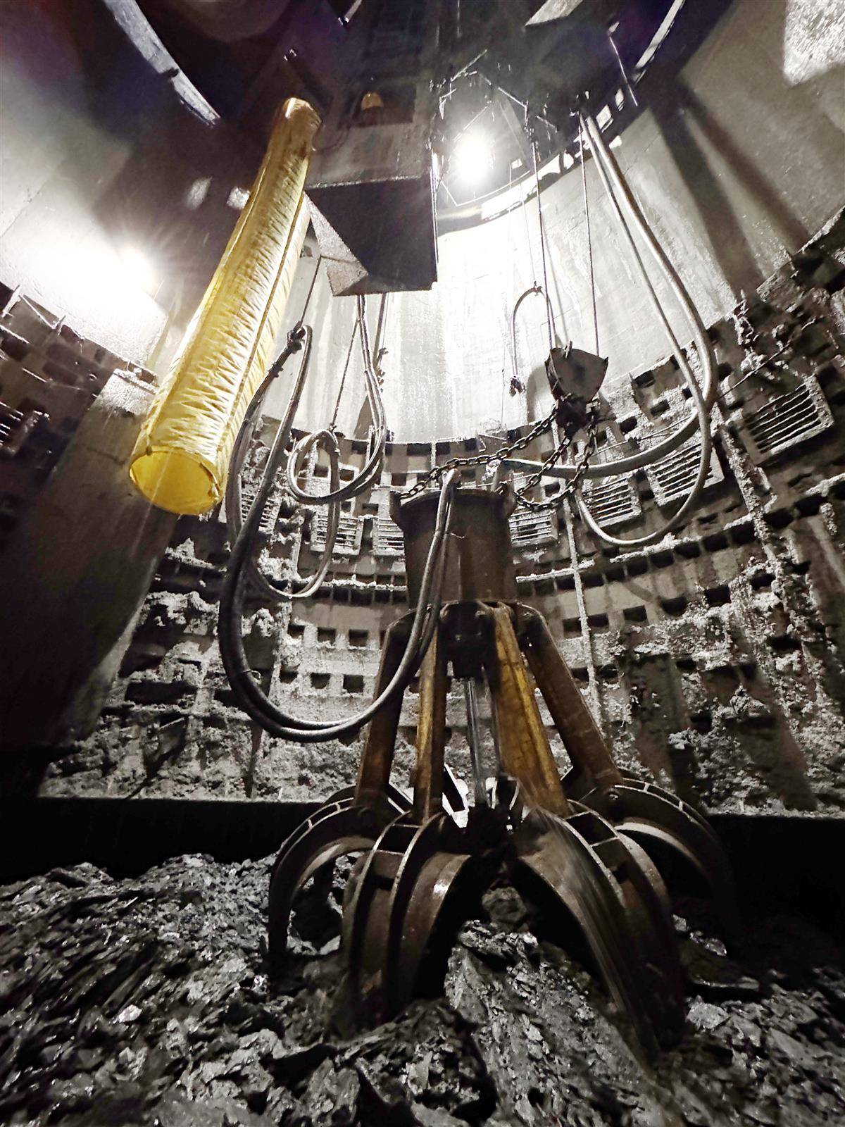 10号竖井底部,中心回转抓岩机正在抓取岩石碎渣。(湖北日报记者 周升蕾 摄)