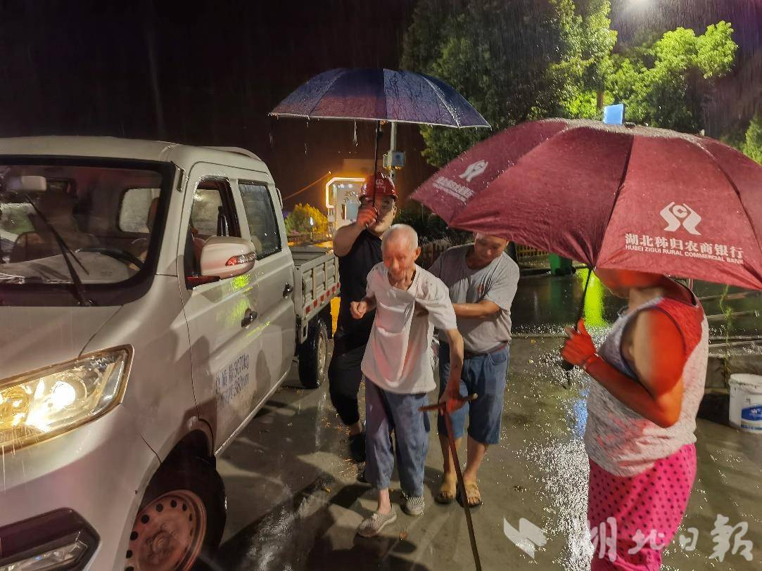 项目部管理人员们为老人撑伞,自己却淋在雨中。他们搀扶着颤颤巍巍的老人,小心翼翼前行。有的帮忙搬运生活物品,确保老人们在转移过程中没有后顾之忧。