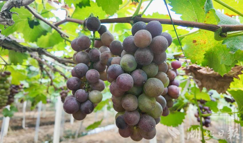 “我们的葡萄个头大,外形饱满,尝起来清甜可口。现在价格也非常实惠,欢迎大家前来采购。”崇阳县龙林采摘园技术员娄光荣热情地向游客推介。