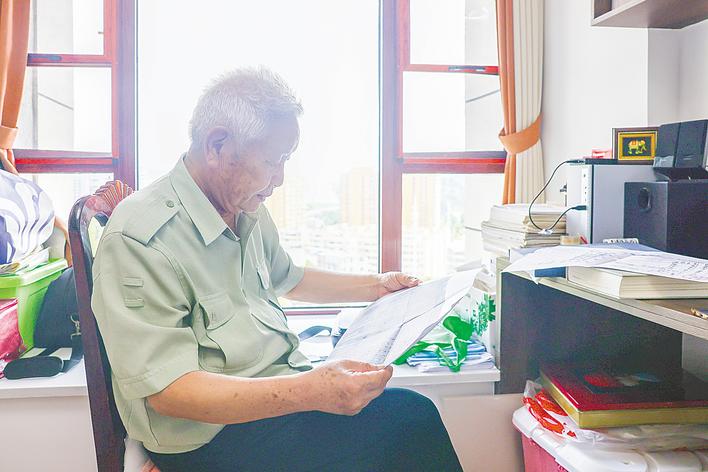 7月14日,恩施市悦融湾小区,陈佐汉老人正在查看家族曾经向恩施县人民政府递交的《申请》。