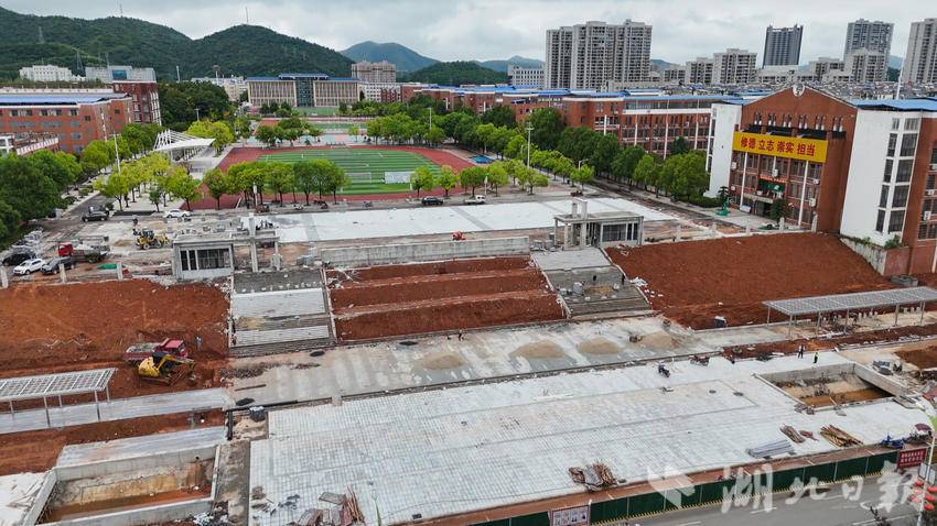 崇阳县大集中学连同附属小学有8000多名学生就读,每到放学时段人流车流增多,经常造成交通拥堵。为了让项目能在新学期及时“上线”,项目施工方抓住暑假这一黄金施工期,顶着持续高温天气加紧施工。通过新建学生分流校门,从源头减少校门口的人流聚集压力;同步配套建设停车场、健身步道、休闲广场等设施,并对部分校内环境进行优化升级,全方位改善校园周边的通行与停留条件。