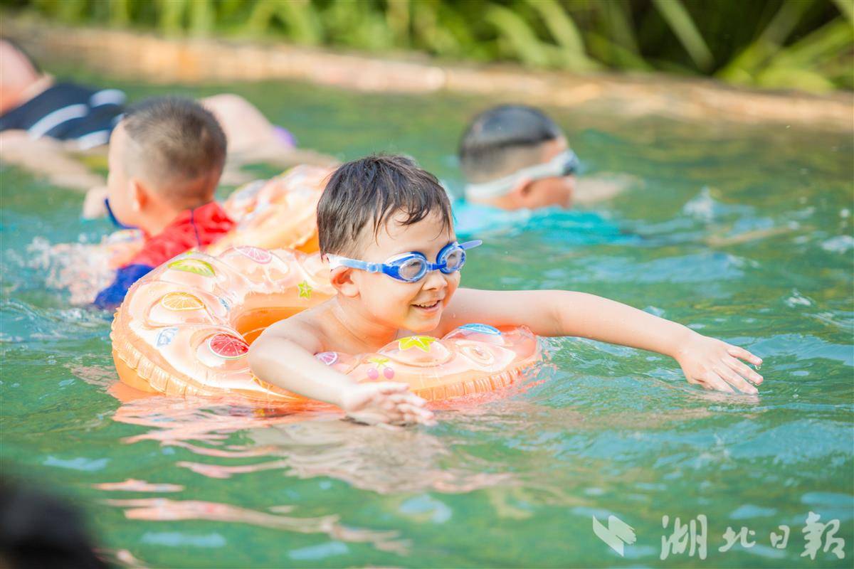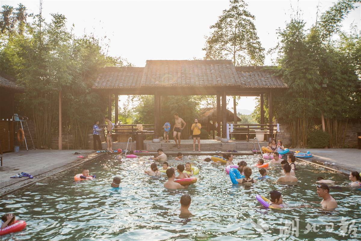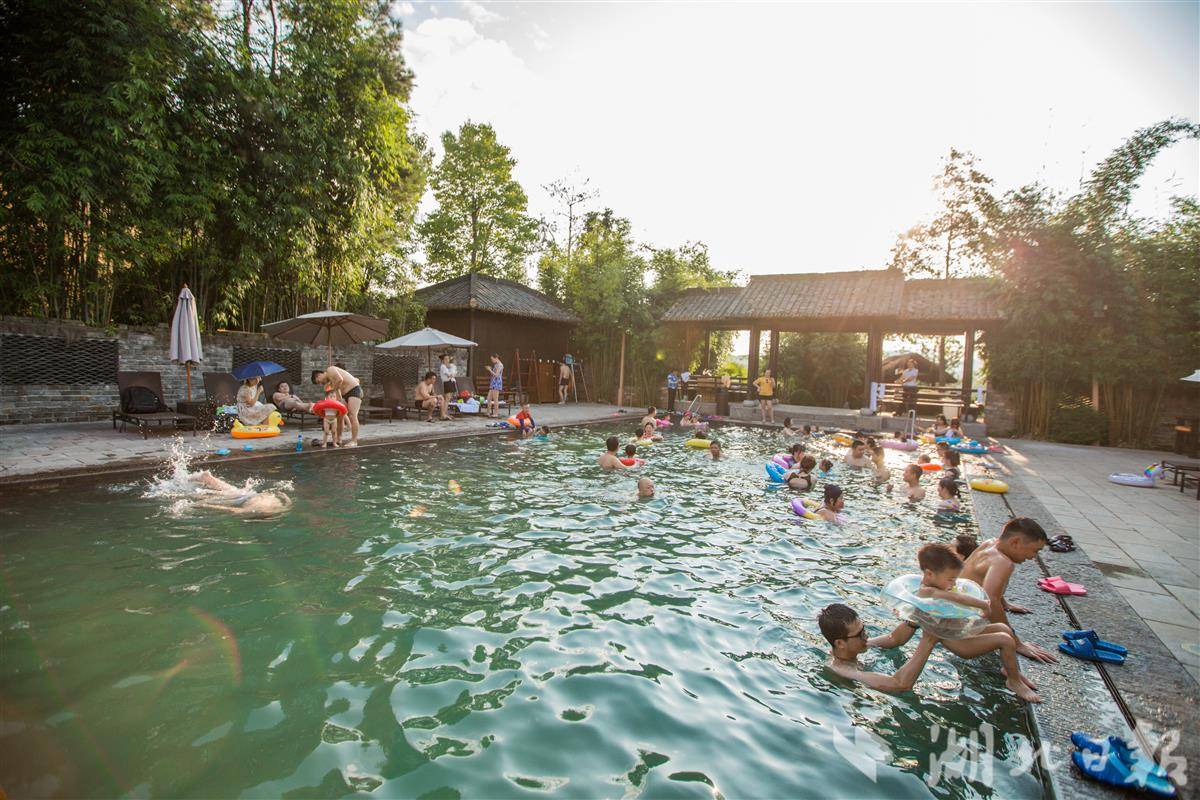 “为了适应夏天戏水,我们温泉早上放水自然摊凉,推出‘热泉冷泡’,原有矿物质不会流失,而且与周边自然生态融合,充满野趣。”王崇介绍,今年暑假,他们特意增加了海洋球池、小黄鸭池、泡泡浴池、水枪大战池、中药浴泡汤池等5个新的戏水池,满足大人小孩不同年龄段多样化的亲子游需求。中药浴泡汤池有艾叶、陈皮、黑茶等中药草,“三伏贴+三伏浴”是专门请当地中医院医生开的方子。