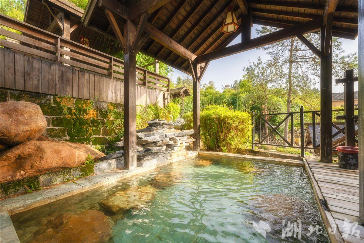 三特浪口温泉景区有室内室外泡池77个,地热出口水温超50℃,已运营10年。去年,景区投入400多万元对设施设备进行改造升级,并投资建设七彩燕子垭索道景区、隽水河十里画廊风情漂流观光区,提升游客体验。整体打造后,崇阳浪口森林温泉巧妙地把森林、梯田、河流等自然生态环境融合进去,“田野牧歌”主题特色明显。