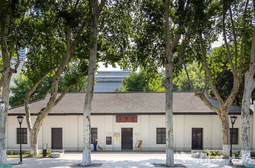 广场东侧仅20米,一座占地约400平方米、白墙黛瓦的单层建筑——武汉受降堂,庄严肃穆。门前汉白玉“受降纪念碑”字迹遒劲,门楣“受降堂”牌匾无声诉说着历史。