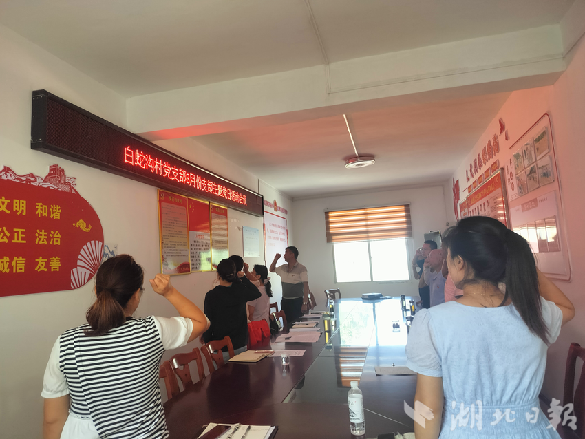 在党员活动室,支部书记带领党员重温入党誓词,勉励党员干部要时刻牢记初心使命,用实际行动践行“绿水青山就是金山银山”的生态理念。随后带领党员志愿者们沿着库岸线开展拉网式巡查,重点检查沿岸防汛设施是否完好、警示标识是否清晰、有无安全隐患点等情况。