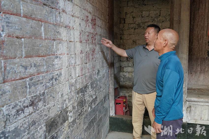 在参观的过程中,记者还发现了一些细节。比如,在民居的墙壁上,有一些用石灰水书写的标语和口号,这些标语和口号虽然已经有些模糊不清,但依然能够看出它们所承载的历史记忆。据随行的崇阳县博物馆馆长匡文介绍,这些标语和口号是在战争时期书写的,反映了当时的社会背景与时代特征。